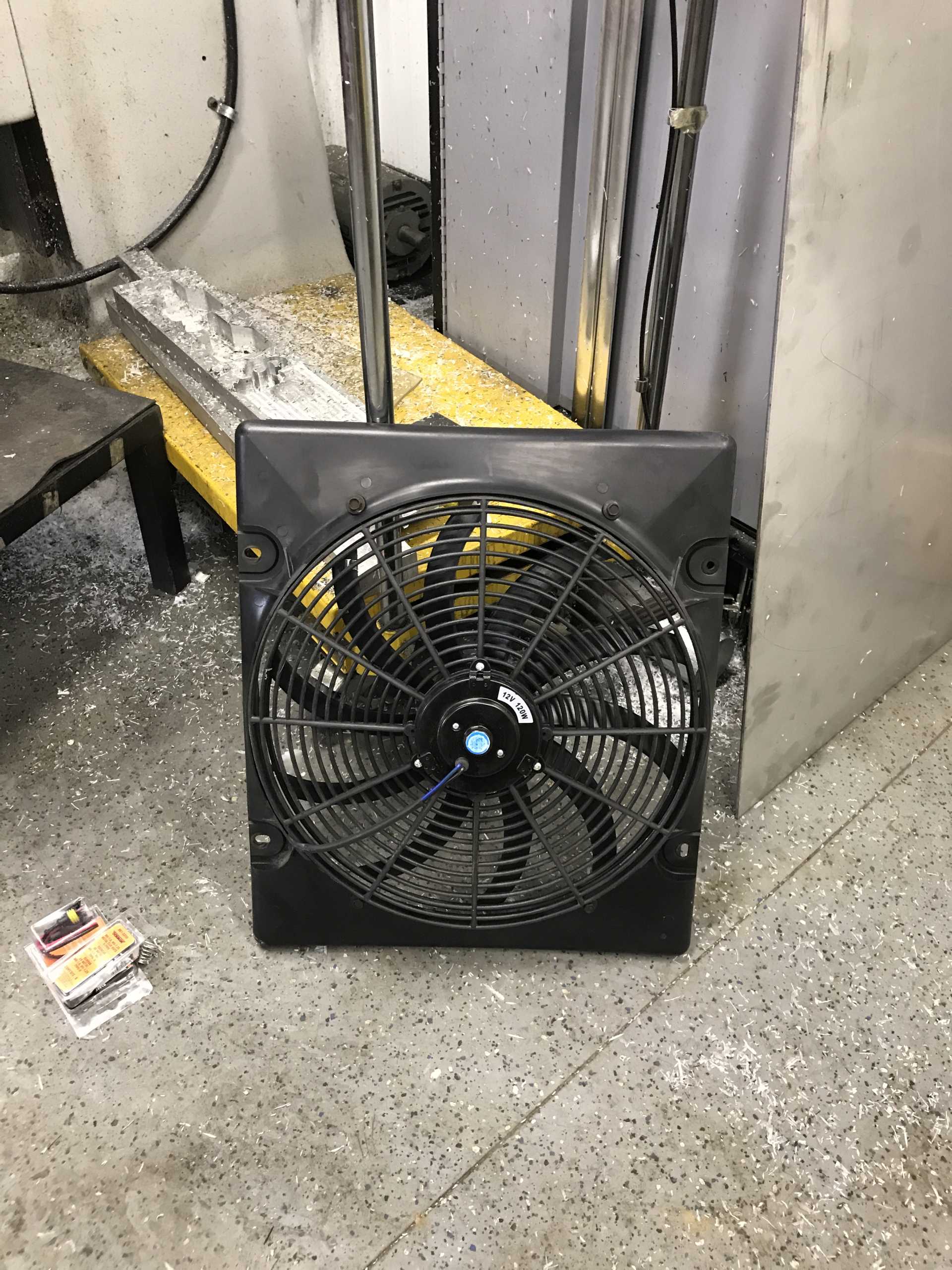 The center of the fan shroud was cut out, and this fan from Amazon was installed.