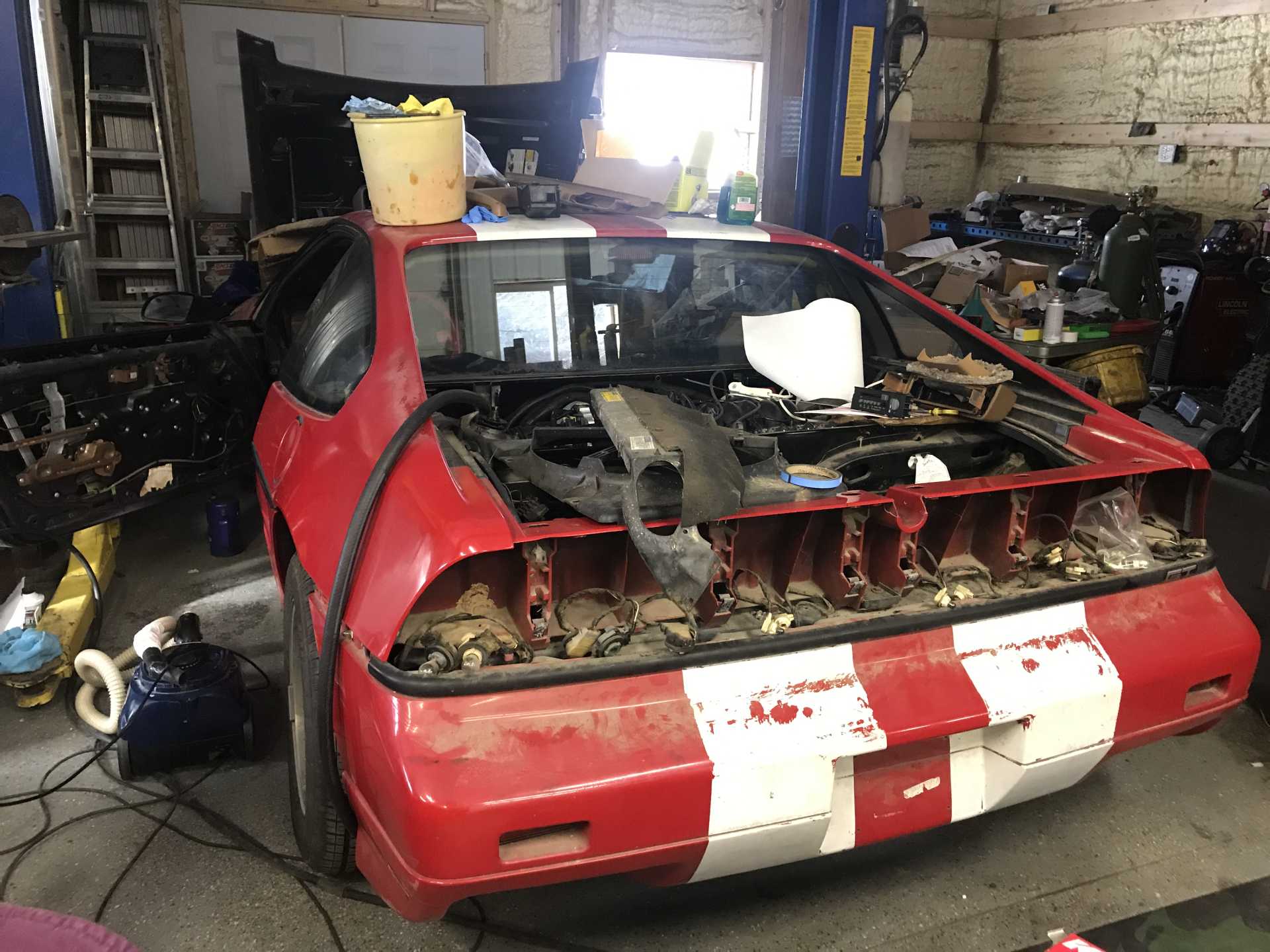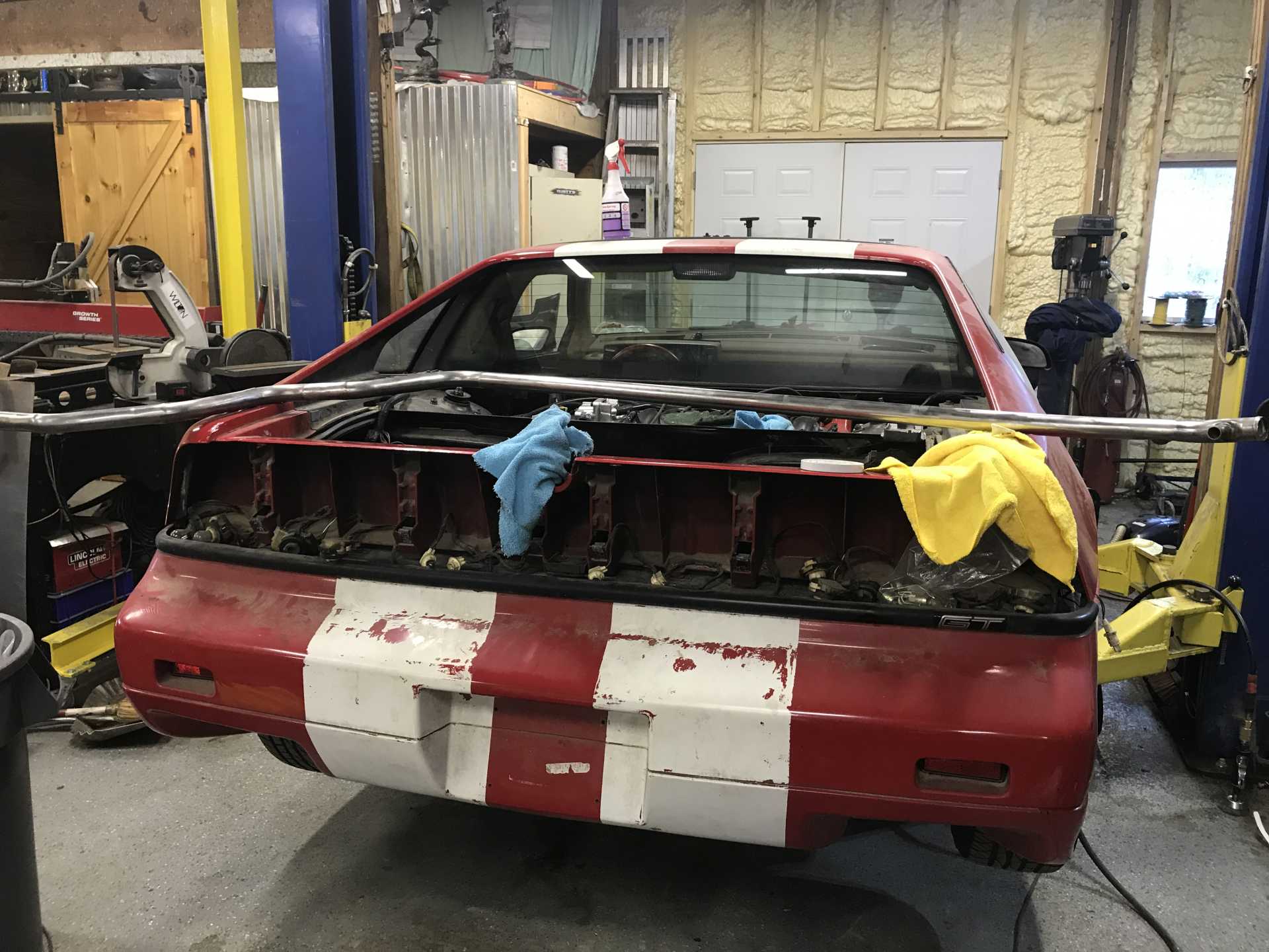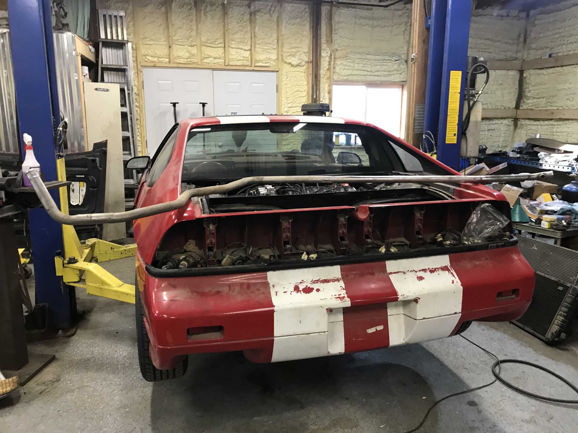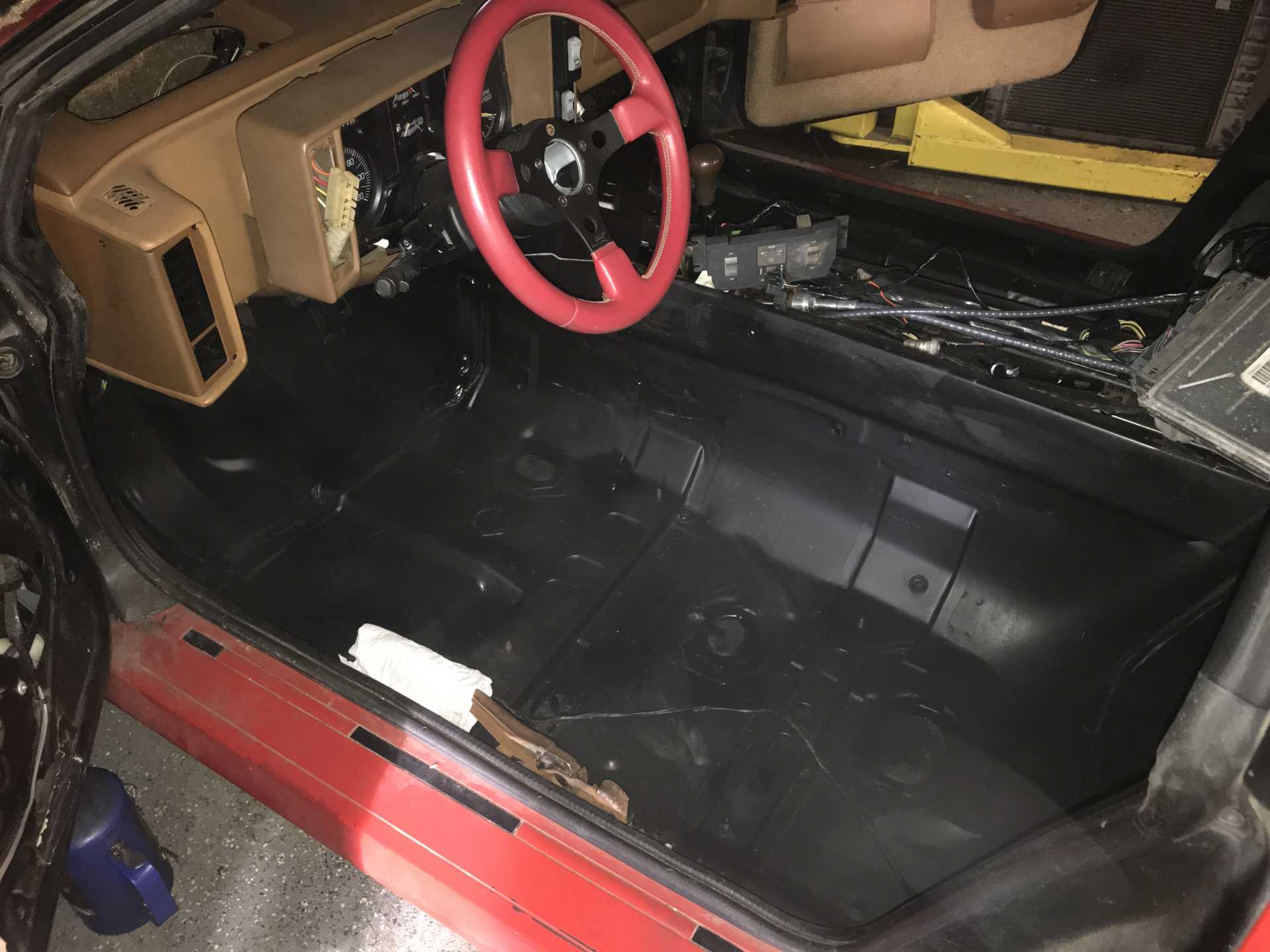 Anyway, the car is a 1988 GT 5spd. I thought my California fiero was clean... this thing is soooo rust free you can lick it(ps, don’t lick it)! The Northstar is already in car. The coolant lines have been started. Looks like there is a new fan in the car. AC was deleted. The trunk has been chopped for the exhaust. Looks like wiring is almost done and it comes with a computer.