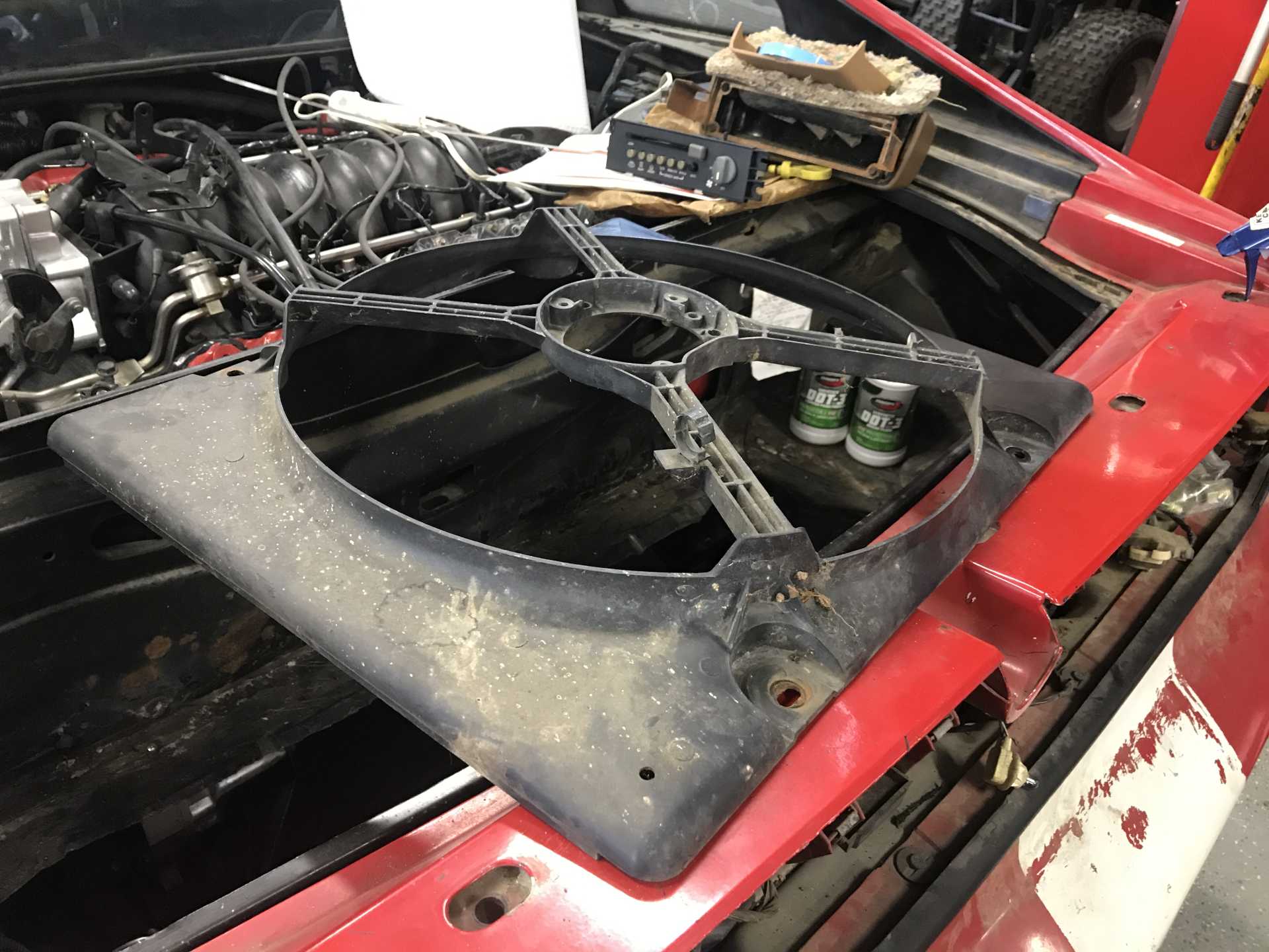 Here’s the dirty, but intact fan shroud I pulled off of a Fiero in a scrap yard.