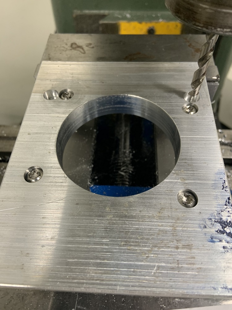 Drilled the through holes for the LZ9 intake bolts, and drilled the holes to be tapped for the N* TB.