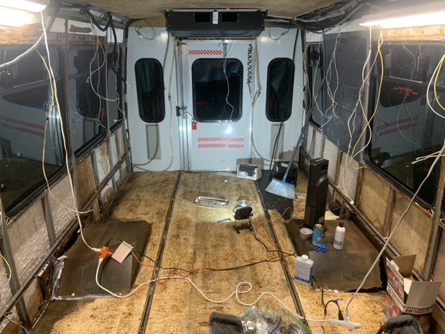 And finally I have finished stripping the bus interior of foam and can start the floor removal to replace all the rusted support beams. The foam removal has taken many hours every week for months, it has been brutal and I am glad it is finished. Need to make a jig to support the frame when I remove the supports.