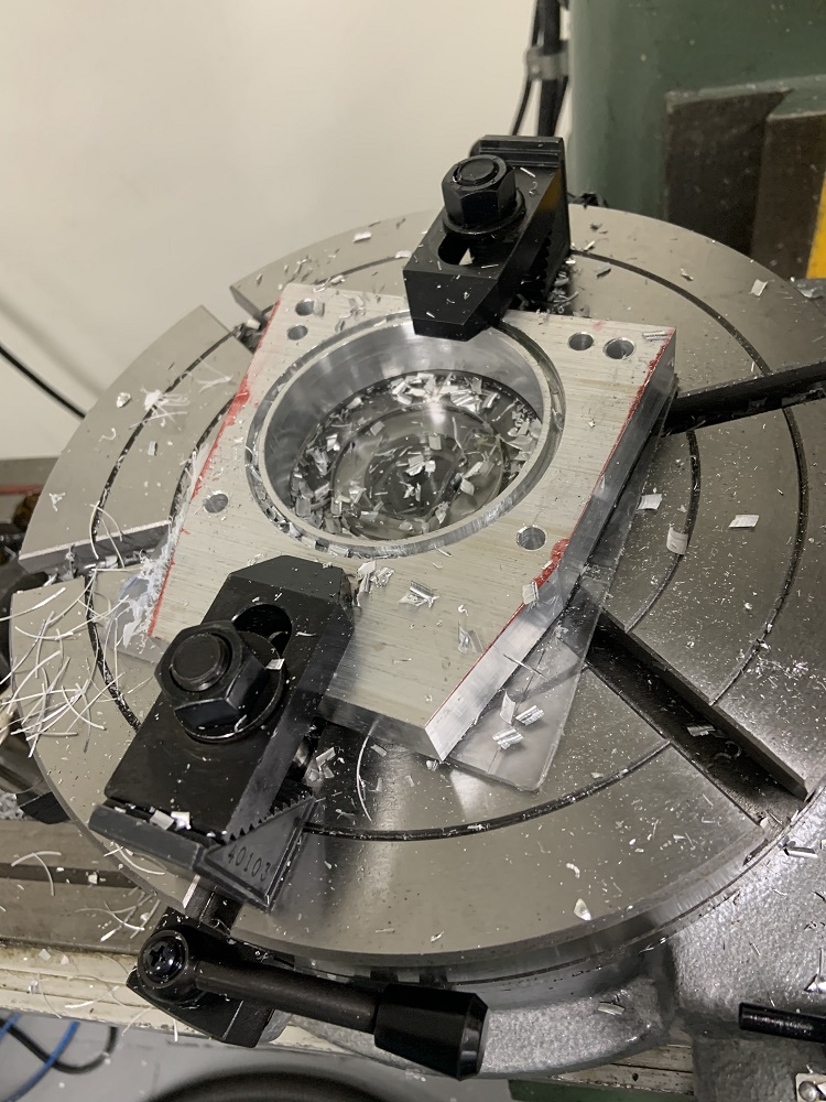 Next I flipped it back over to machine the pockets for the bolt heads, and the pockets for the N* TB locating dowels.
