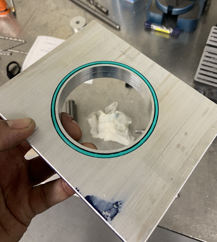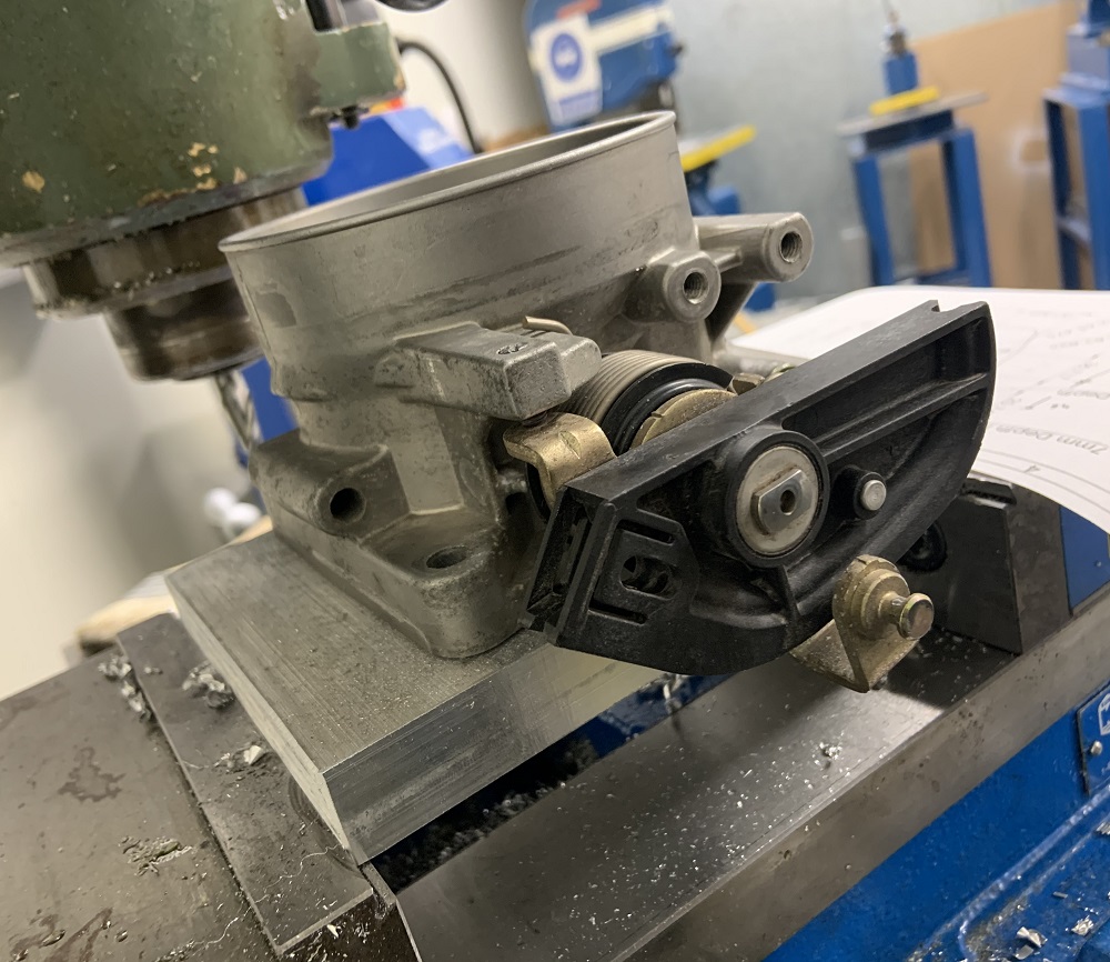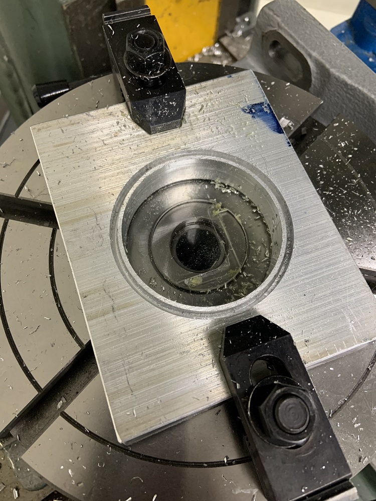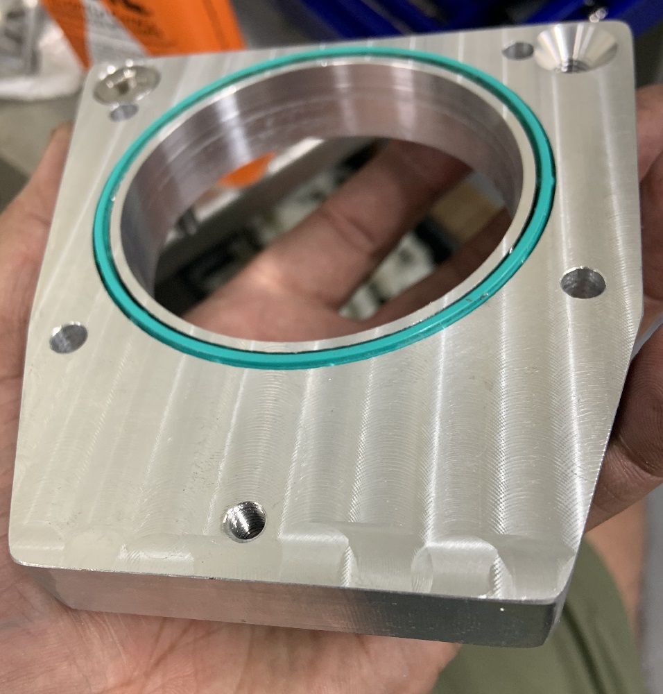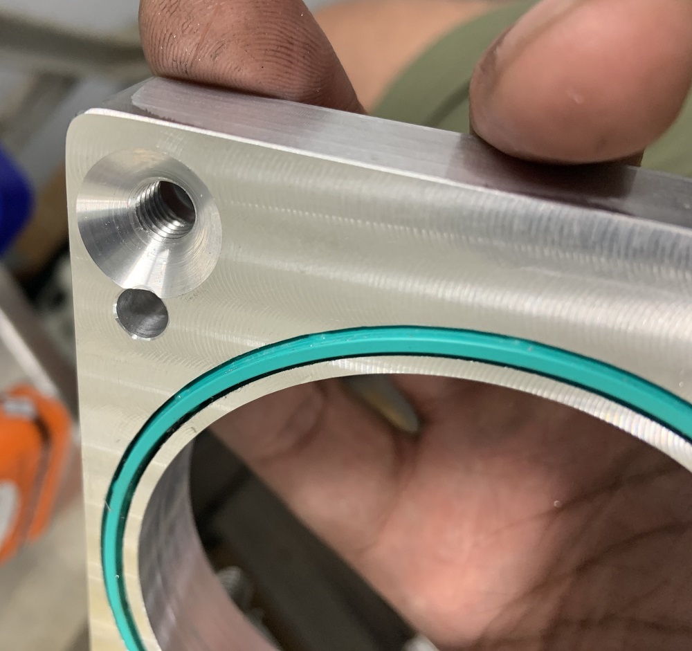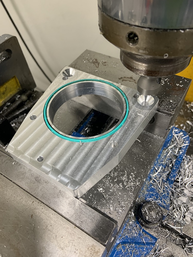 And cut out the groove for the LZ9 TB gasket. I had a flat bottomed bit break on me halfway. I did not have another flat bottom endmill so I used the same diameter in a ball end, I had to machine it a little deeper to compensate. The gasket stick-out is not as much as I would like, but it was "a happy little accident" as I had to face it eventually anyways and the stick-out ended up correct.