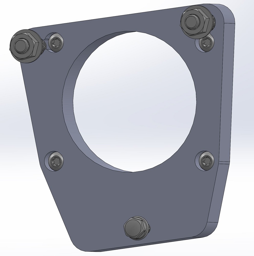Finished up the throttle body adapter CAD after work, put together an assembly with hardware for kicks. The N* TB has two 10mm locating dowels that there are recesses for at the top two M8 studs, the TB is 15.5mm thick up top and 13.5mm thick where the bottom M6 bolt will secure it, the hardware is spaced accordingly in the CAD. The ring cut into the rear is to use the stock LZ9 TB gasket between the adapter and the intake.
