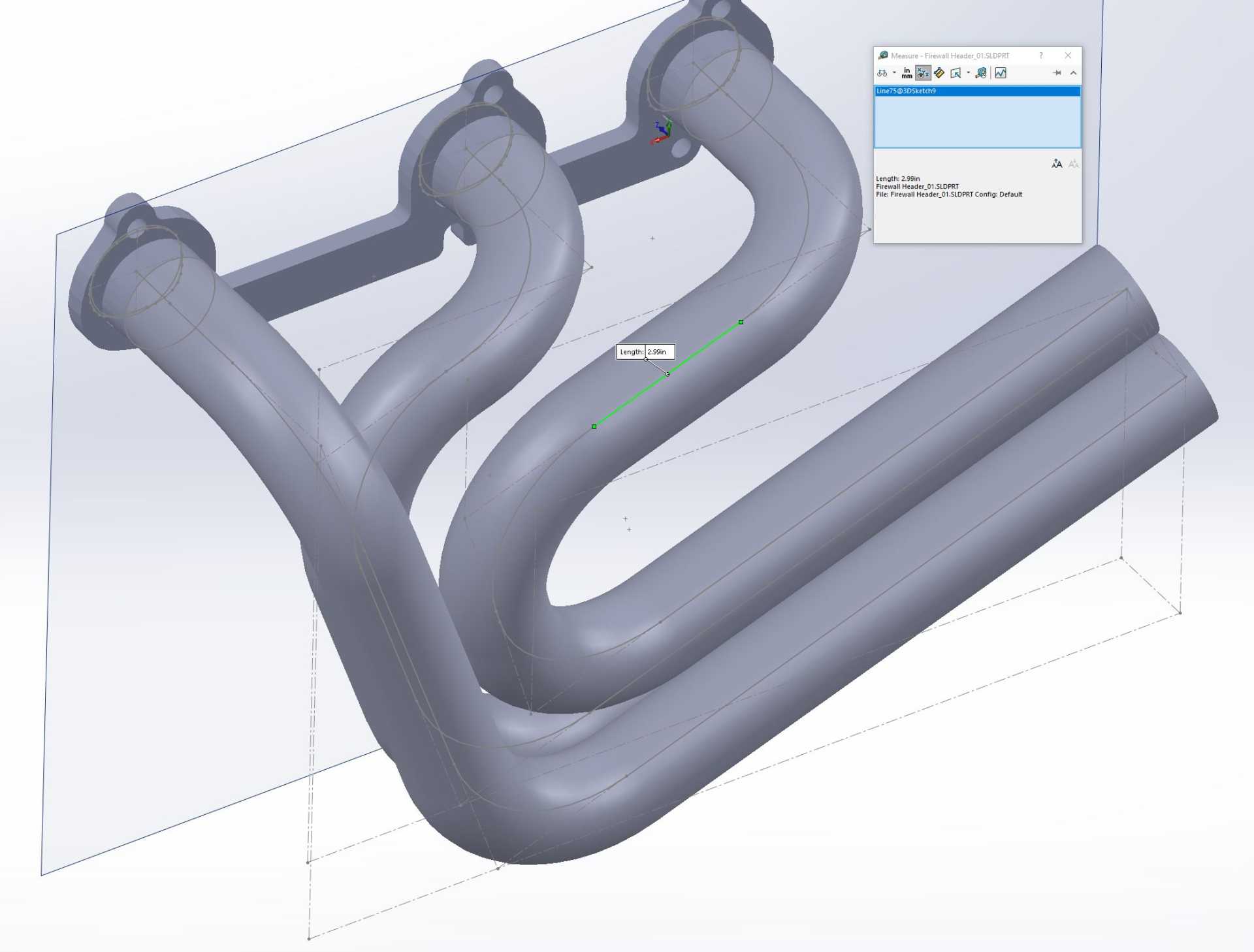 I have a 3D sketch defining each primary, and it is a simple matter of seeing how long each section needs to be and cutting it. I can masking tape the headers together to get all the angles right. then tack it in place, and weld each primary tube fully individually. Then I will tack them to the header flanges and the collectors and weld everything fully.