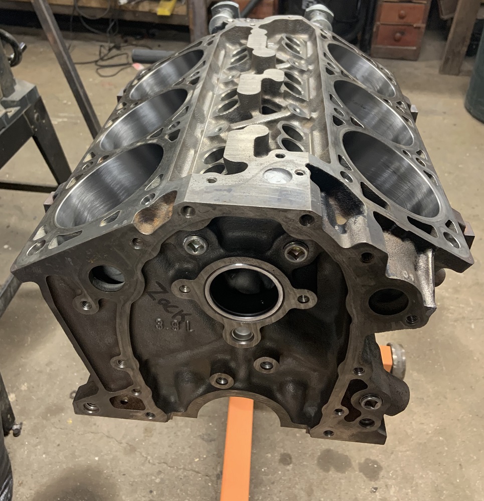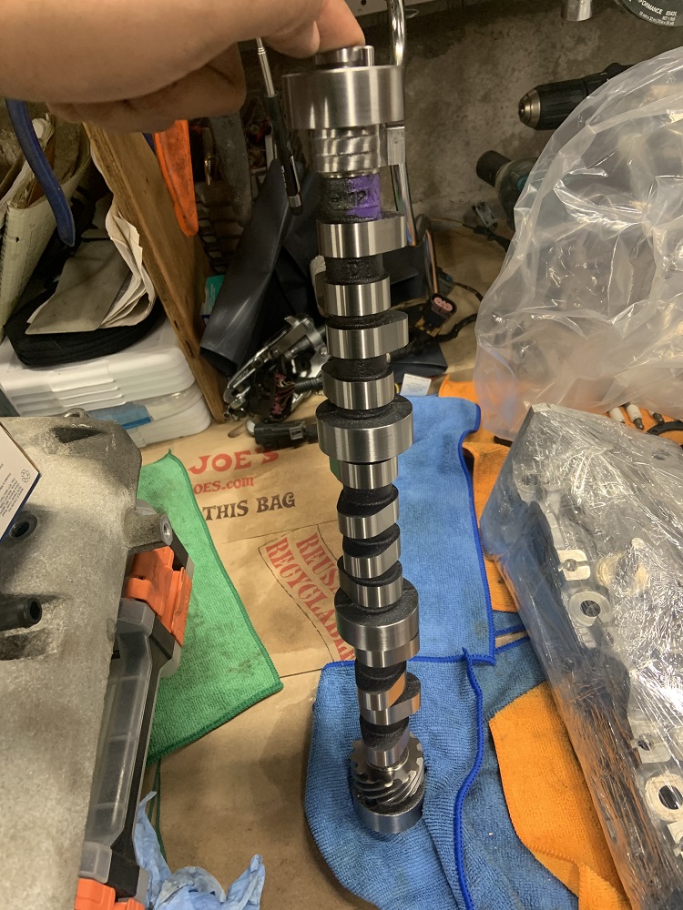 I also managed to pick up the engine block and heads from the machine shop a day before my surgery. I got the block back on the stand and ready to go. They cut the valves, the valve seats, skimmed the heads, honed the cylinders, put in the cam bearings, and I brought the cam with me and we checked the fit and it is perfect. They said the bores were very round and straight and only needed a light honing. They still have my rotating assembly for balancing but I am not worried about picking that stuff up, and it is not affecting me measuring my pushrod lengths to get those on order.
