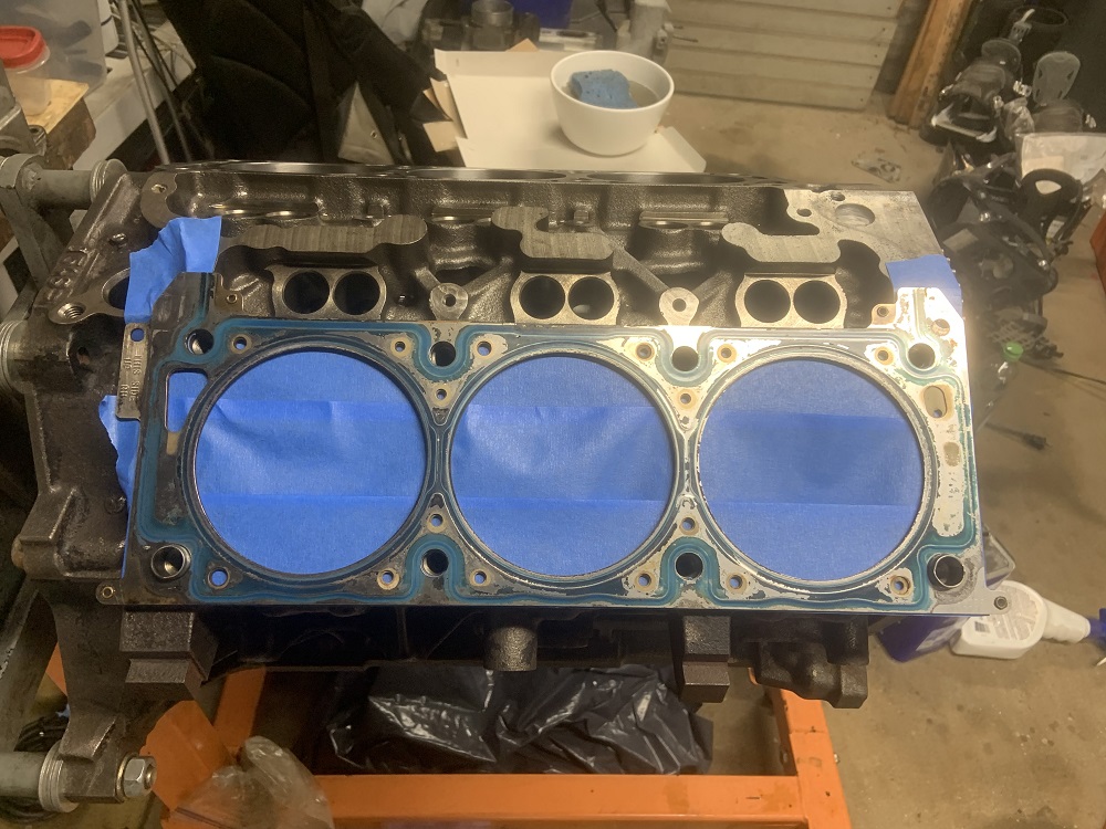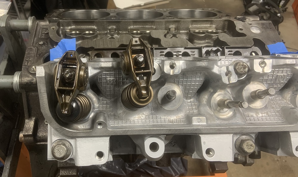Next steps include installing a stock valve spring, retainer, and lock on the second valve for the cylinder, installing two of my old lifters, installing an old head gasket with some painters tape on the head and block surfaces, and measuring the pushrod lengths. I will also install the crank and Plastigauge it to confirm that none of the clearances are too tight or loose, and I will probably Plastigauge the rod ends too just to verify the machine shop's readings.