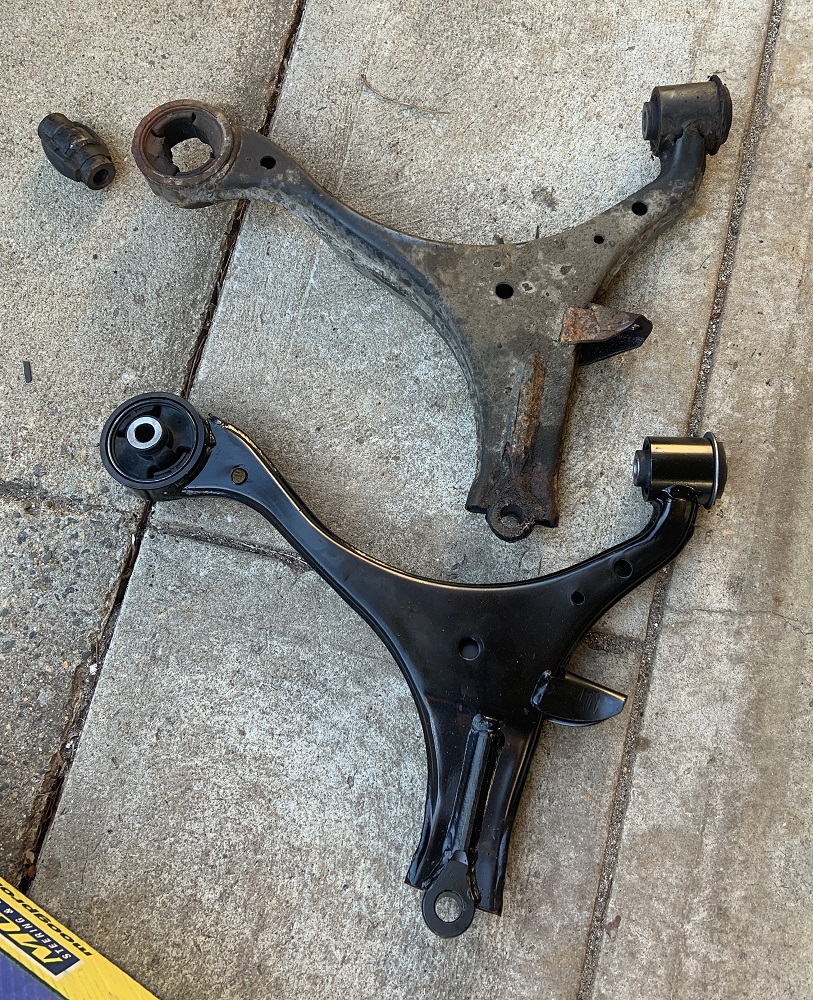 I helped my brother rebuild our other brother's 02 Civic, it came out good, in addition to new brake lines that he made, we installed new control arms and bushings, ball joints, tie rod ends, and endlinks. The car drives awesome now. As you can see from the pic, the front bushings on both sides had completely separated and it was driving like garbage.