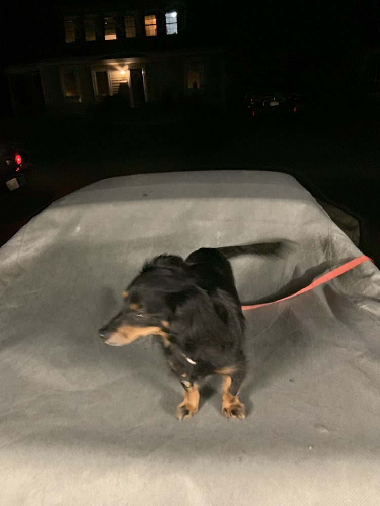 My girlfriend's dog Limo loves cars and bikes and motors, he loves leaning into the turns in the car, and he goes in a backpack when my girlfriend rides her GSXR 600 and he loves it. He comes to the motocross track too and watches all the riders go by. I introduced him to the Fiero and he explored inside and then I put him on top of it to chill.