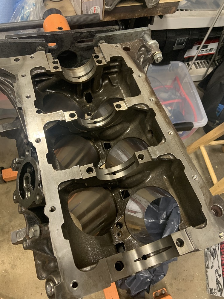 I picked up the remaining parts from the machine shop last weekend, the crank has been balanced and polished, and it turns out the rods when torqued to 40ftlbs with the ARP rod bolts were still within factory clearances, so I did not need the .002" over OD rod bearings.