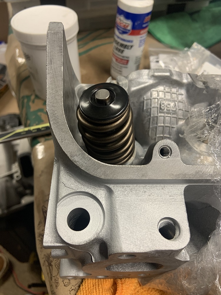 My old lifters were at my apartment so I was unable to go further with measuring the pushrod lengths, so I assembled one of the valves with the PAC springs, locks, and retainers. The valve tips and face have been ground, the valve seats were given a valve job, and the valves were lapped to their seats.