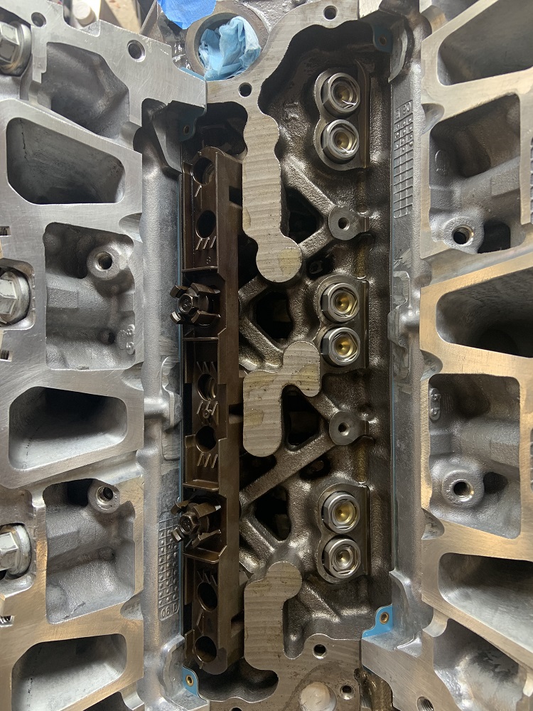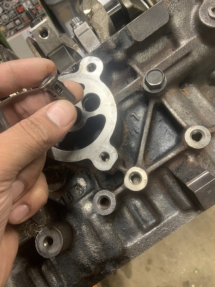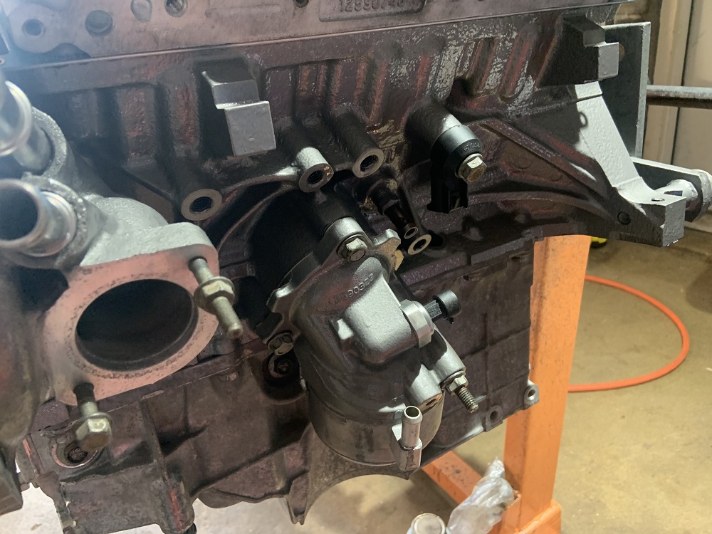 I did not realize the piston squirters needed to be installed prior to the crank, it appears doable but there is no good angle to tighten the bolts with the crank installed so out it comes.