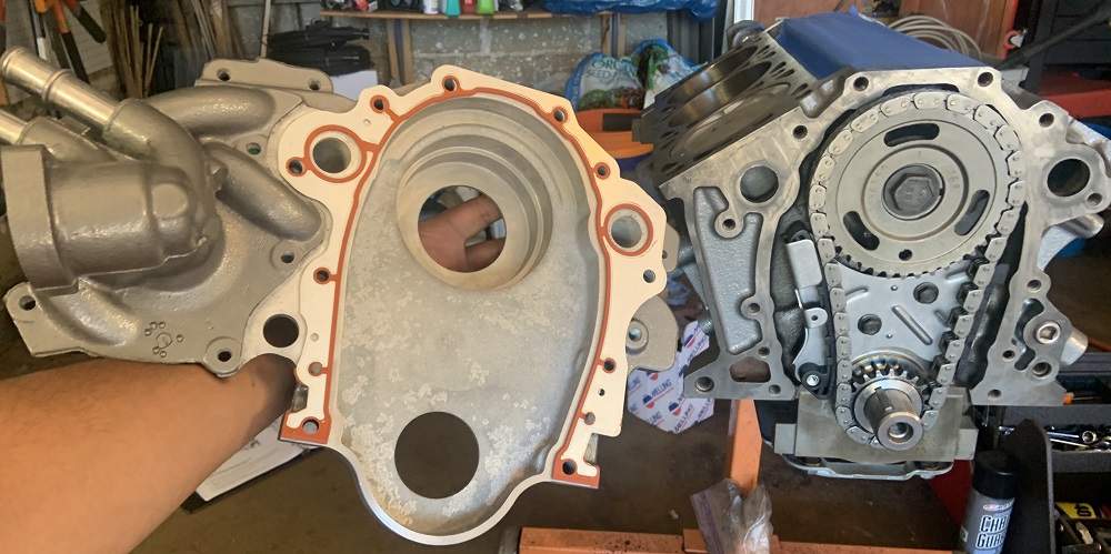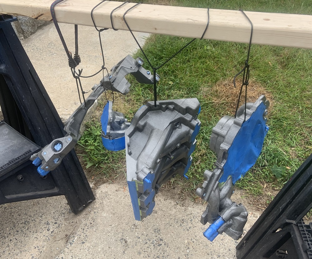 These are the parts that brushed, waiting for spray. If you look at the timing cover you can see how the metallic came out real uneven when brushed on.