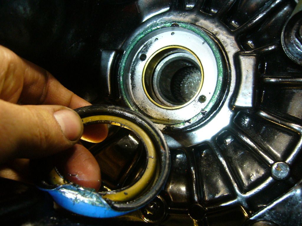Here you can see how I remove parts of the damaged seal - worn seal metal cage: