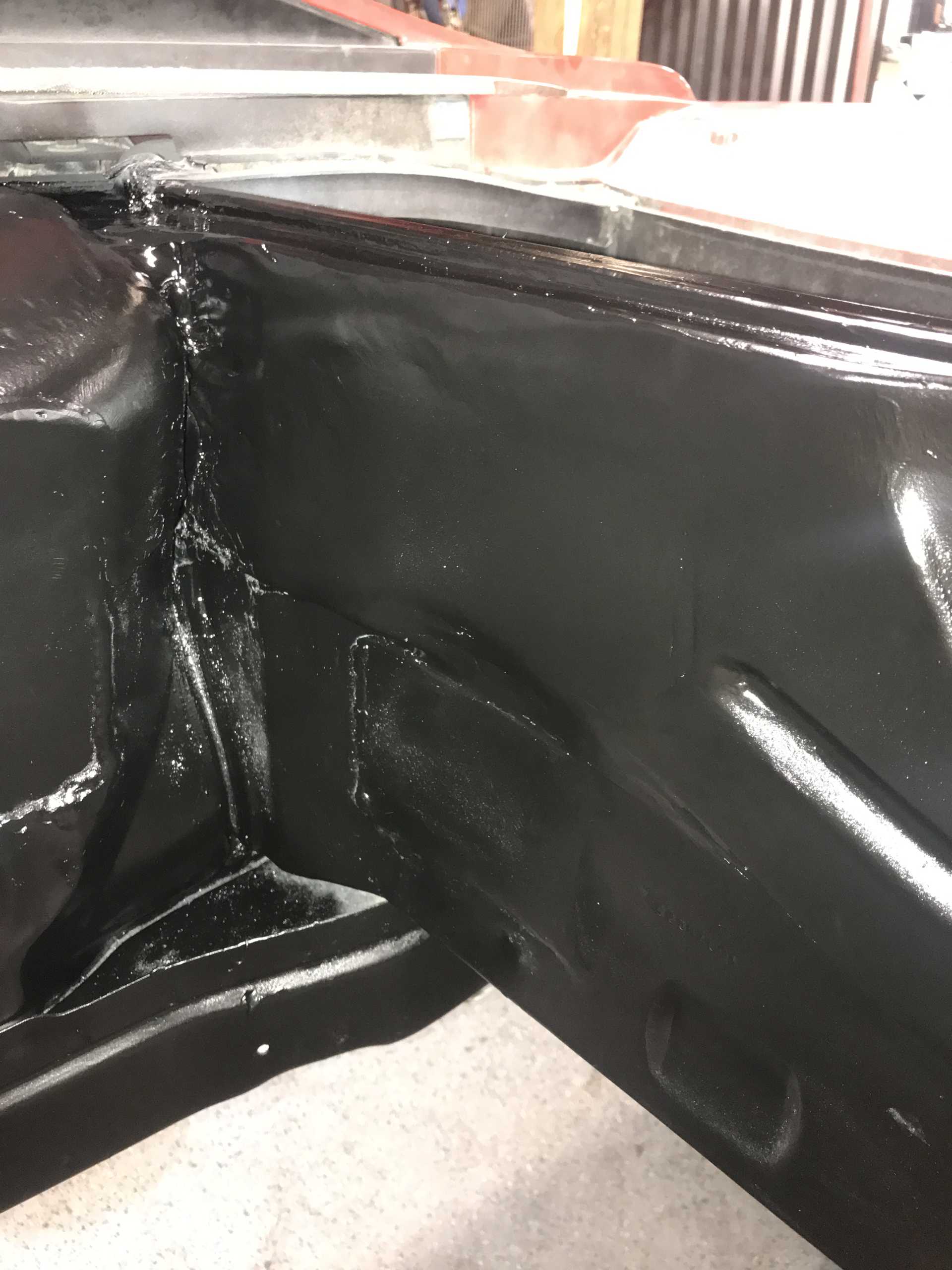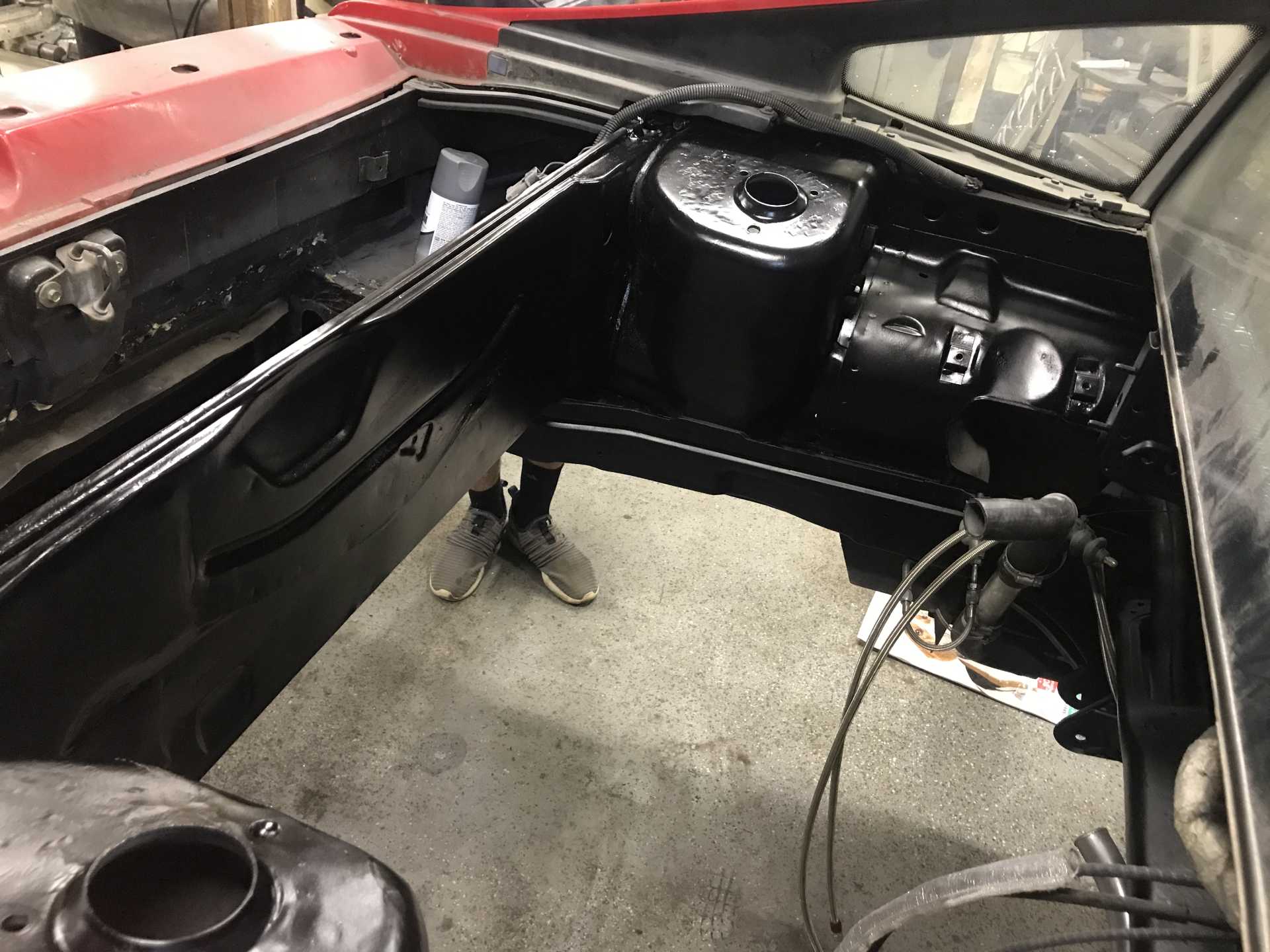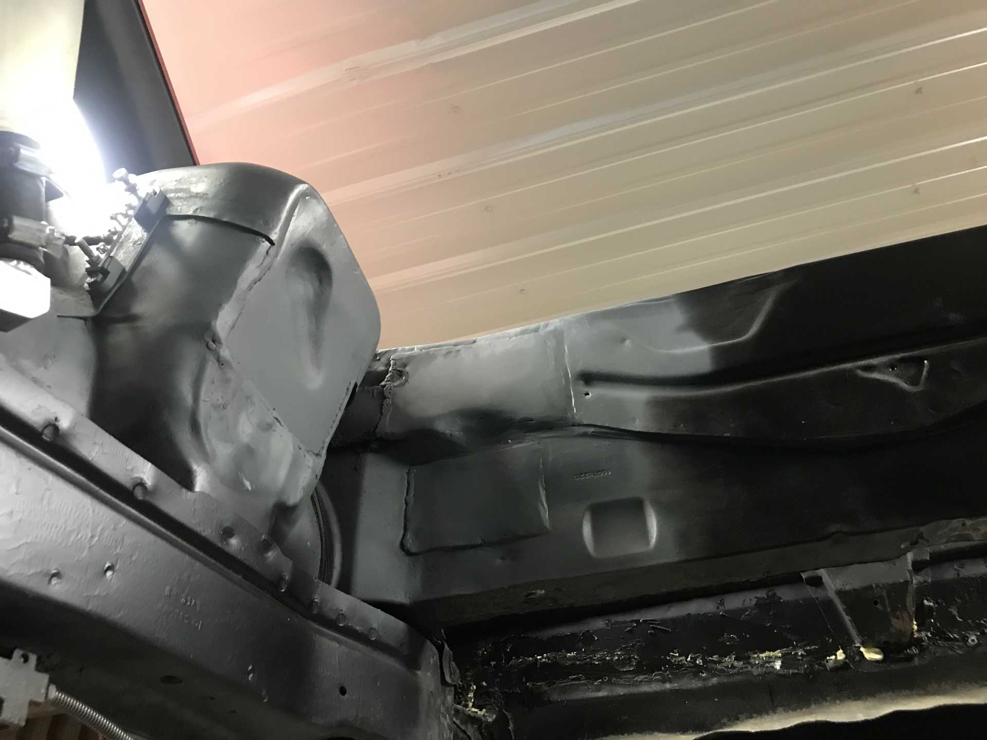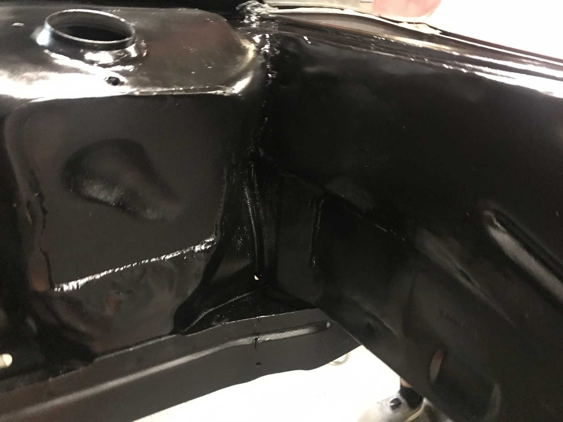 7/4/21 The black is hard to pick up in the pictures. Paul helped me with a lot of prep, we did use some bondo around the strut tower to blend the seams more. He brought me some Eastwood paint that brought the engine bay back to life.