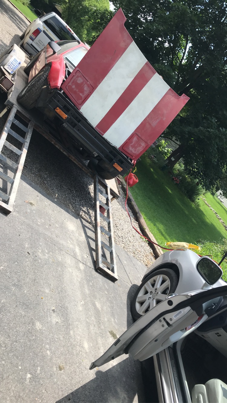 Paul drove it onto the trailer. Usually I’d load a Fiero facing forward, but I only lived 2 miles away down a dirt road from Mr. Eric.