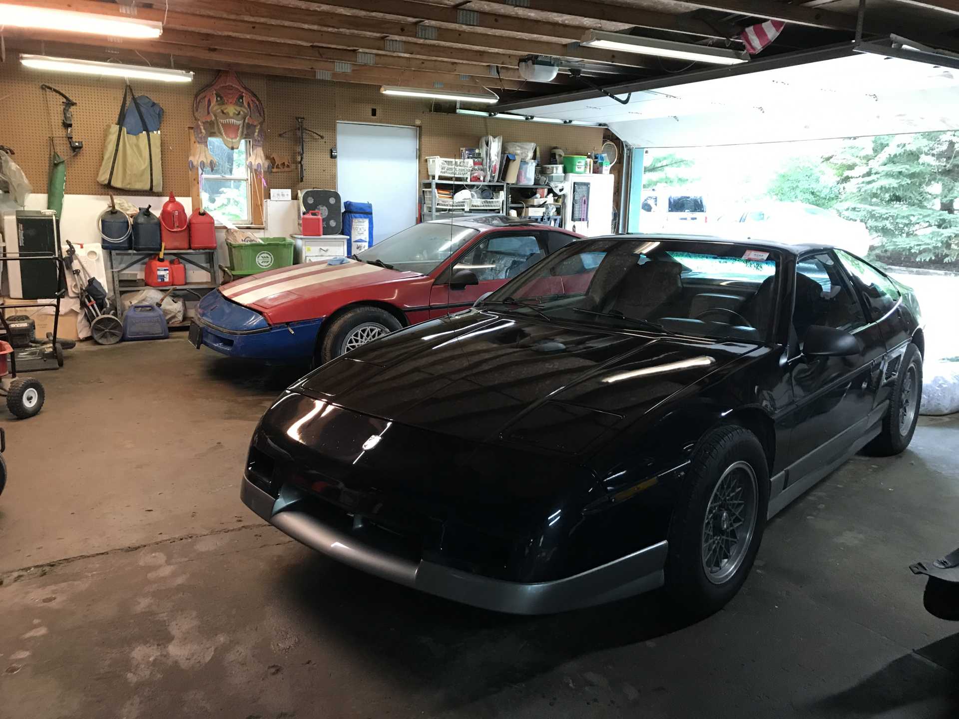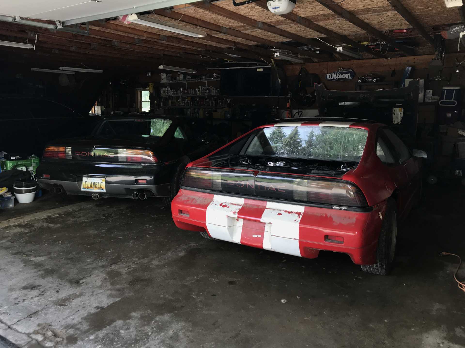 I convinced my mom to park her Jeep outside because the Fiero is needy. I only have one picture of all 3 of my Fieros together, but that was before the ’88 even had a cradle. I think I’m due for another photo shoot of my 3 *running* Fieros.