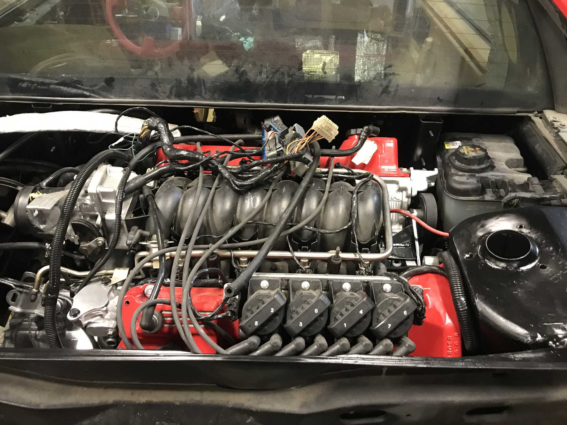 7/11/21 The 02 sensor got pinched when the engine went in, so I needed to pull it and fix the wiring on it. We had Mr. Eric listen to the engine. He thought it sounded great. The ticking was gone, and he said it was probably air caught in the lifters. There seemed to be typically valve train noise. Remember there is no exhaust yet so it’s very loud. The engine would backfire under power which is odd.