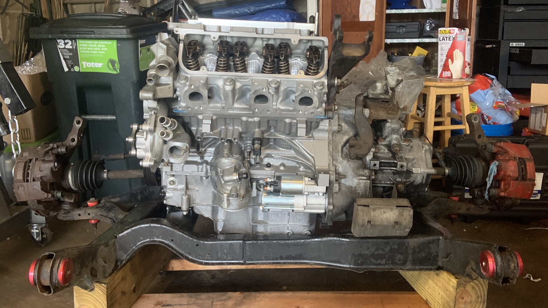 I have a few odds and ends to finish with the motor, I need to paint the valve covers and intake and install the valve covers, make a block off plate where the VVT actuator was installed in the timing cover, Make a coolant fill point to replace where the plastic fill neck was as I believe it will interfere, modify the rear exhaust manifold to flow better and maybe move where the O2 sensor goes, install the exhaust manifolds, install the coolant crossover with gaskets, figure out the press fit heater line coming out of the coolant crossover, and install the thermostat.