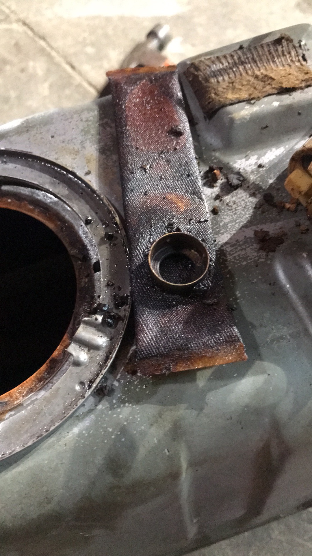 I held my breath and the inside of the tank has me breathe a sigh of relief. Yes, the tank is toast, but I was worried the fuel issue was something wrong with the wiring or ECM or something tricky like that. I had this tank at a radiator shop early in the year. They said the tank was very hard to clean and they should’ve charged me more. I assumed they got it all… clearly not. At this point, so much rust has come out of the tank the walls are very thin. I need to find a new one.