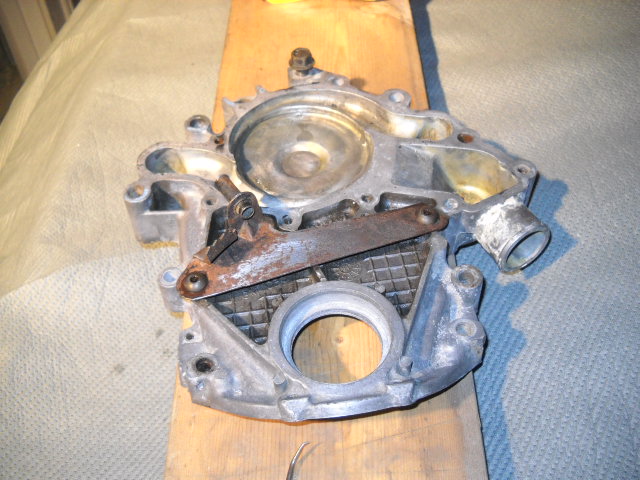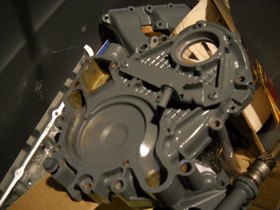 Cleaned timing cover. If you look back at the old engine on the stand you will see how dirty the cover was when I started.