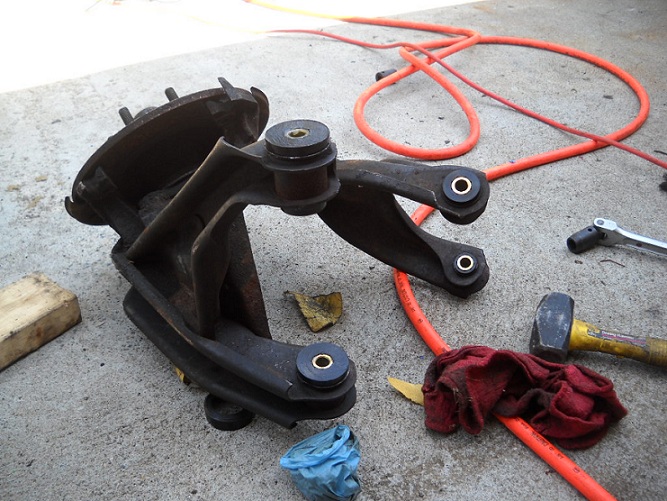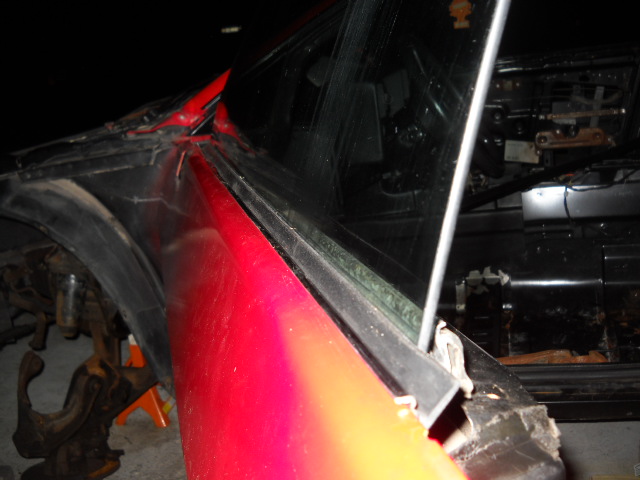 Front suspension off, windows in. I fought the front suspension for a while. Bolts were fused to sleeves. I used a dremel and a pneumatic hammer.