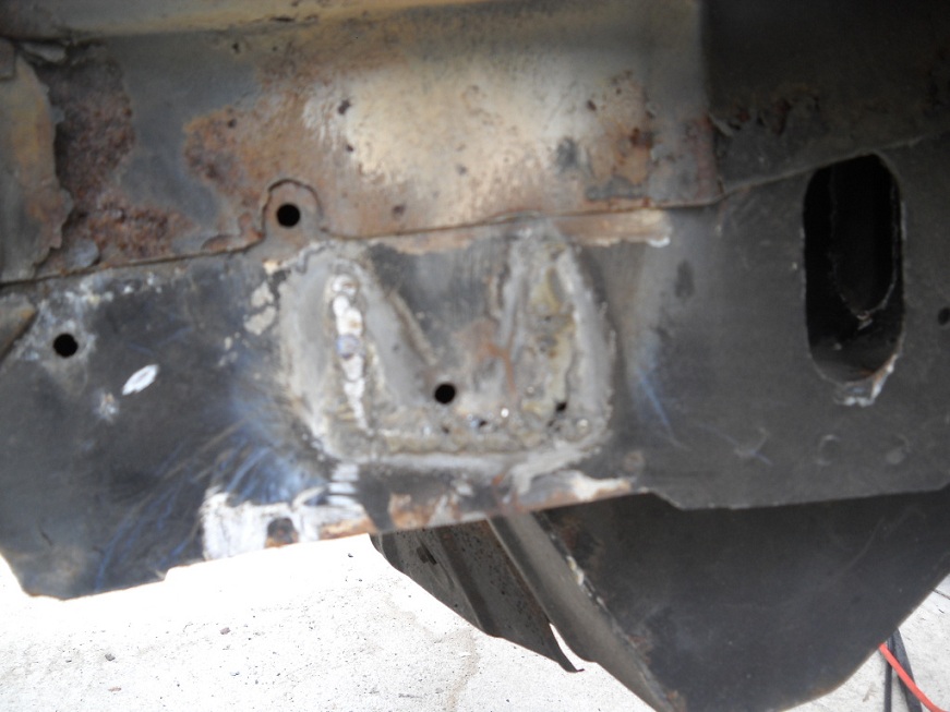 That section on the lower rear frame rail welded back up. Needs to be ground down fully Or I might just leave it because no one is going to see it.
