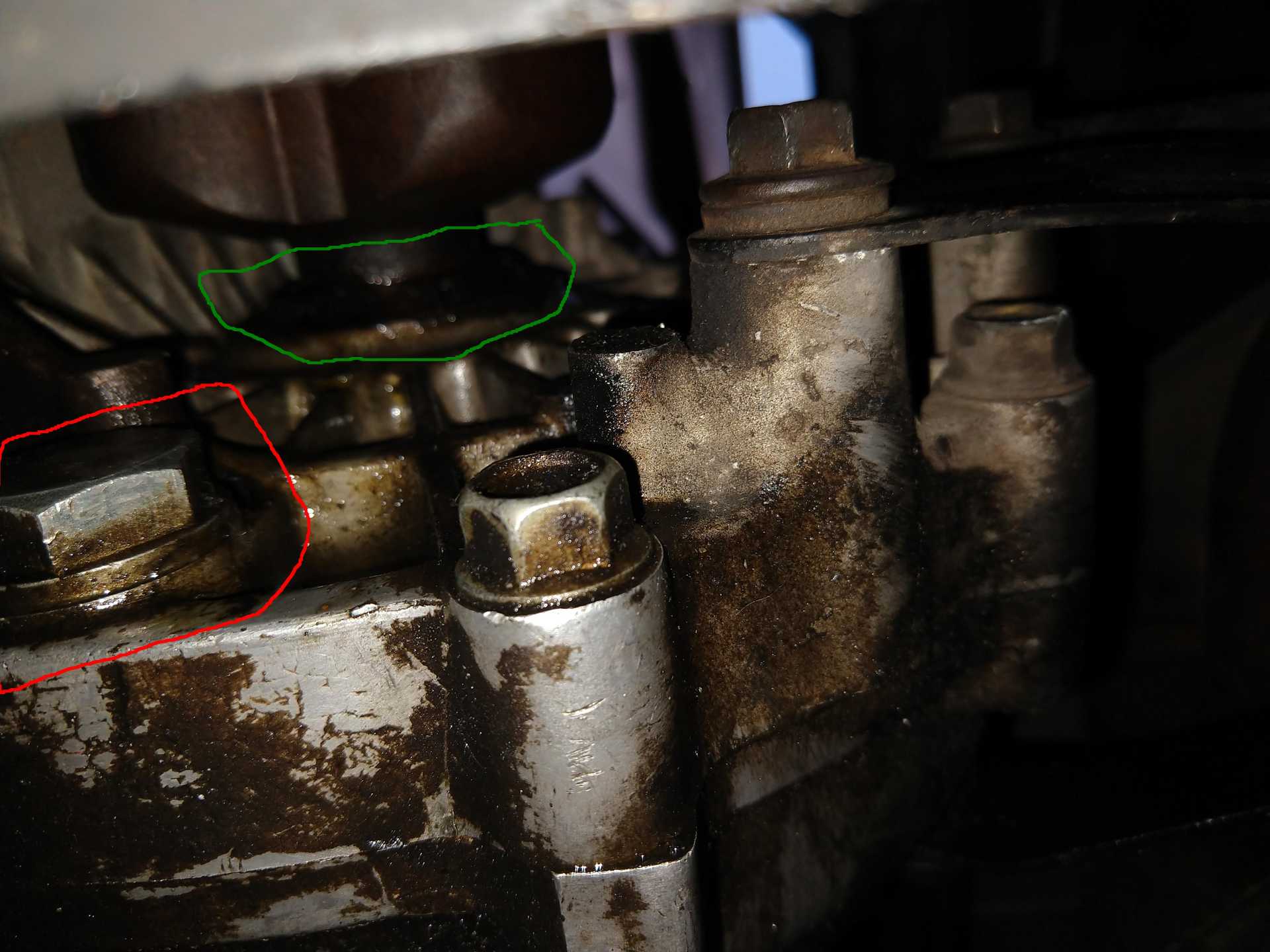 Blacktree, et al: Yeah, I meant 5.3 pints! By the way, there is a fill, hole: it's that 17mm nut circled in red in the picture. There's a a spring behind the hole which should be removed... and kept safe until filling is done. That's kind of academic, though, because It is much easier to fill through the VSS hole. Also, in another thread, someone measured the distance from the surface of the VSS hole to the "full" and "Low" points and its 9/16" and 3/4" respectively. I found it much easier to set an adjustable builder's square to 9/16" and just use that to measure when my level was right.