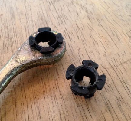 Here's a pic of what the pin on my clutch looks like, and the plastic bushings. One slightly smaller than the other, though only slightly:
