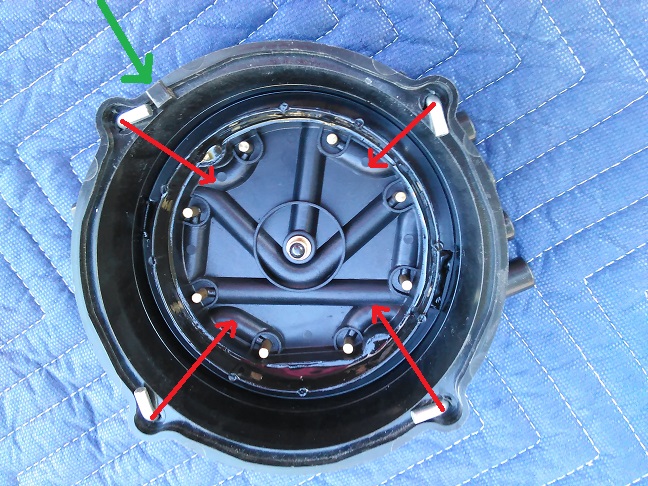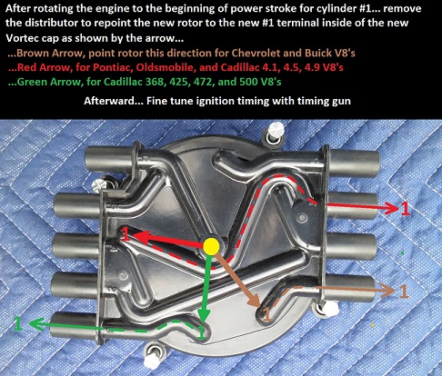 The hold down hooks need to be centered between the inner brass terminals... the square alignment tooth (green arrow) needs to be positioned as shown in relation to the upper vortec cap
