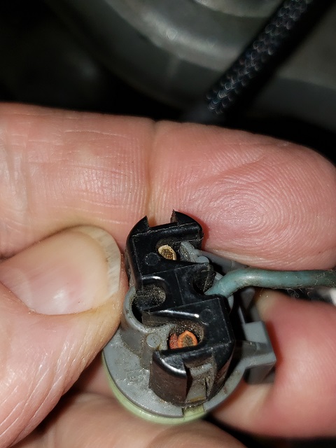 The correct plug will have three wires. The two outside wires (C & D, farthest apart) are for the oil pump pressure switch that backs up the relay, the center wire (A)is the resistance circuit for the gage. (A) is the wire closest to the clip on the plug. Are you using a three pin sending unit for Oil Pressure?[This message has been edited by olejoedad (edited 12-29-2019).]