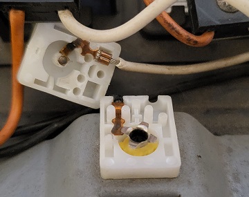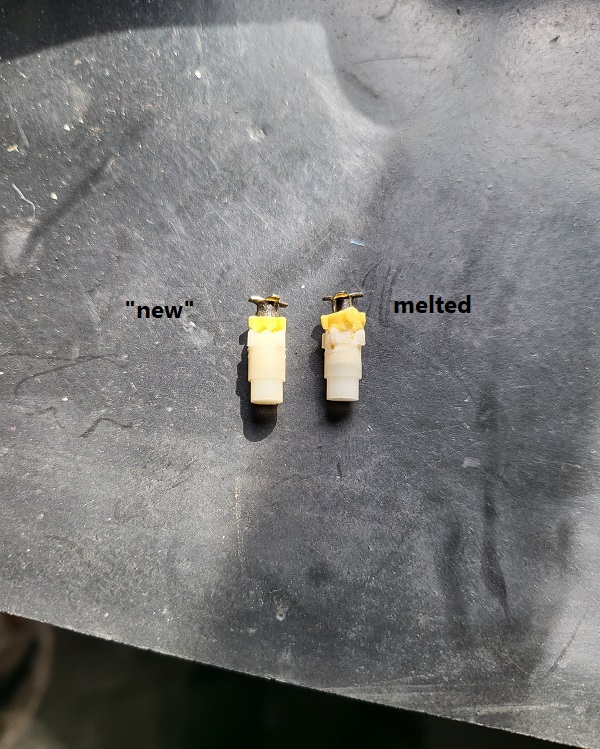 I went to a junkyard earlier and pulled two dome assemblies. I carefully opened up one of the switches to compare and mine is definitely melted. It's an interesting design where when the button is pressed the circular portion inside the switch indexes on teeth (yellow teeth mate to the white teeth in the pic) to make contact with the ground and when you push it again it indexes so it's not touching the ground.