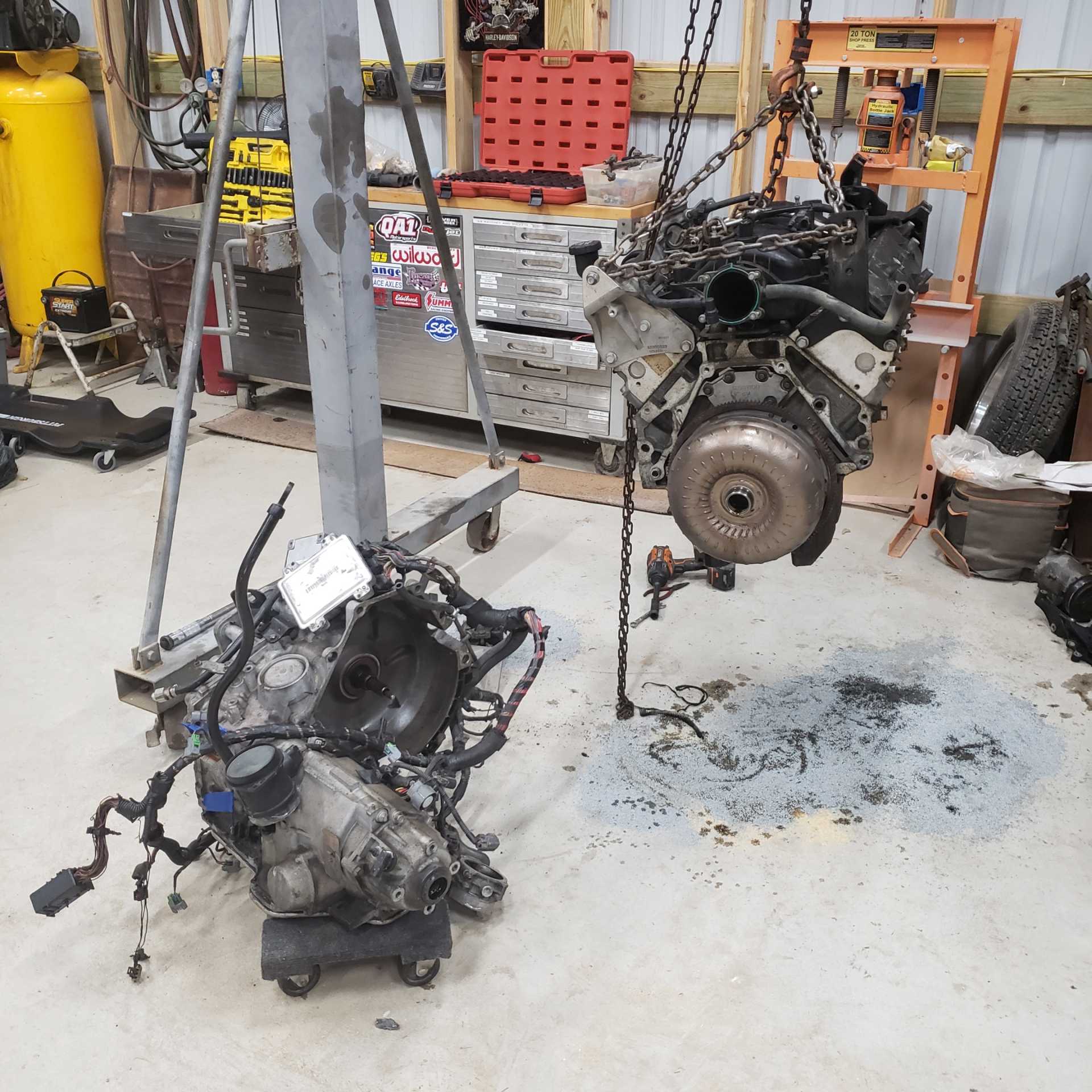 Finally got some work done. Engine and trans is out of the GXP and separated. Time to order some parts!