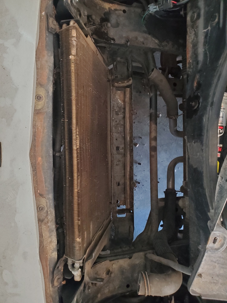 That stated, started taking things apart and moving things where I wanted them to be. Pulled the radiator and cleaned everything up; pre-cleaning: