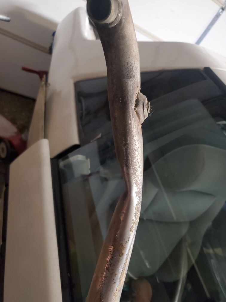 Pulled the passenger coolant tube. I knew I'd need to fix this going in so I already have a replacement section to weld in. I sectioned this piece to see how bad it actually was. . . It was bad. . .