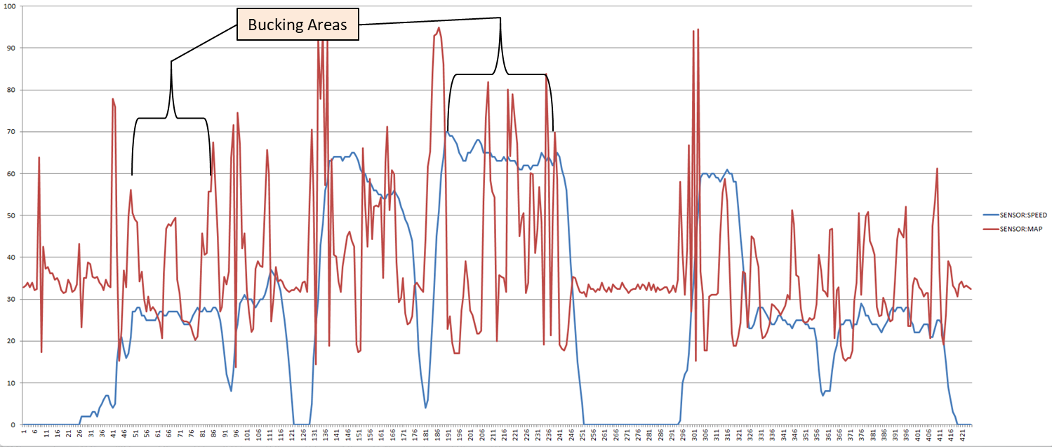 Here's a chart showing the MAP data vs. Speed in a test drive