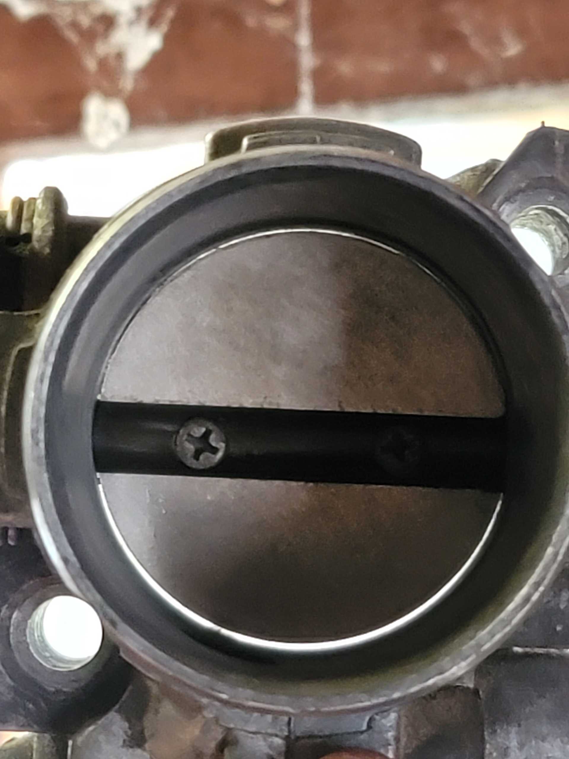 [EDIT] Is the end of the throttle stop screw actually what is preventing the throttle from closing any further? In other words... Is there any chance that the two screws holding the throttle plate in the shaft have been loosened/removed and the plate re-positioned somewhat, just enough to possibly prevent the plate/valve from closing all the way? Doubtful, but I'm trying to imagine any/all potential scenarios.