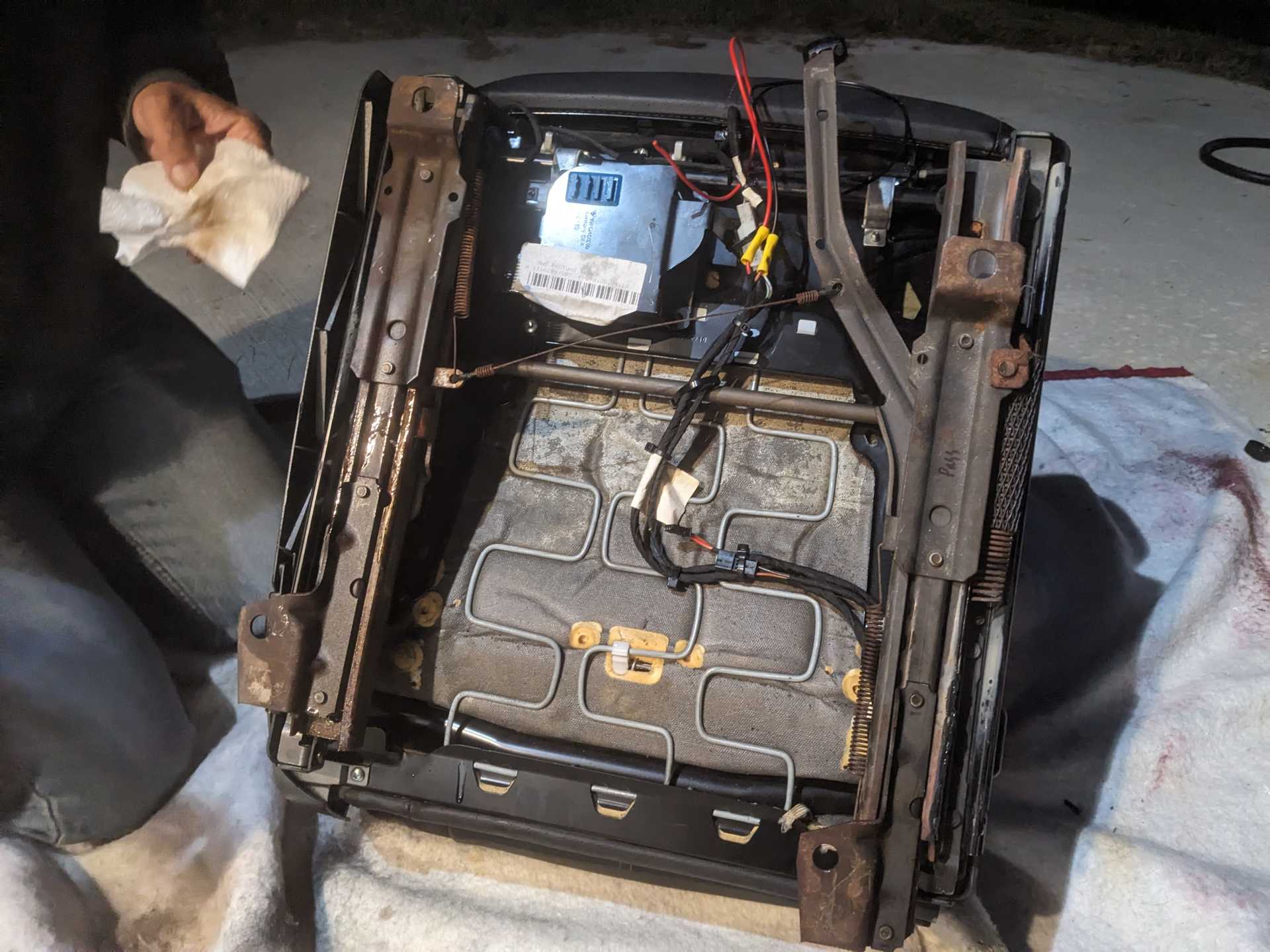 I hooked the seats up to battery power and ground to wrap the project up and come to find out, the seats are heated, which is a real nice plus! Although, I now need to take the seats back out of the car to figure out the wiring between the seat motor and the heating elements so I can install a switch for the heating elements and to make sure they aren't running 24/7 because that will drain the battery or cause other problems if the wires aren't thick enough. I'm not sure what wires the seats' previous owners were messing with so I'll need to do some exploration and research to figure out what exactly is going on with this. I'll also make a slit in the carpet as well for the wires to come out of so everything is hidden. Just when you think it's over, it's not...