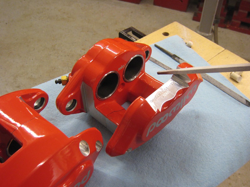 Apparently Wilwood doesn't deburr their stuff, so I had to go at these brand-new calipers with a file.