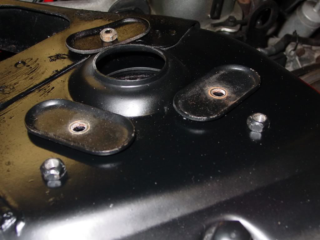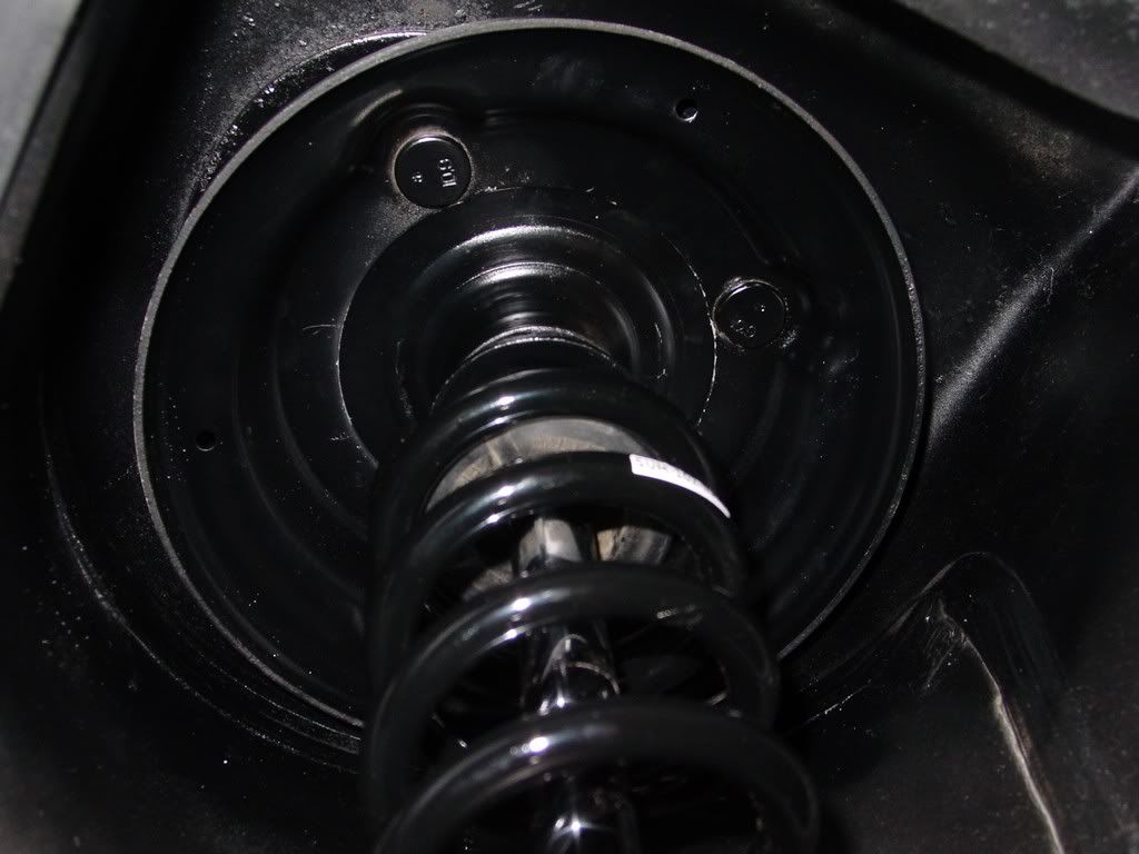 basic order I assembled the parts in strut sleeve snap ring perch spring top of strut boot dome side up(dust cover bottom portion removed retain metal inner snubbed if it has separated) larger washer dome side up big factory coil perch with studs facing up drapped around strut base now ad the coil retaining plate with the flat side up. The center helps keep the coil spring centered now and the smaller washer cupped side up now your strut bolt tighten..... once secure slide the upper factory coil perch up and slide studs through coil retainer plate then add flat plate over studs.