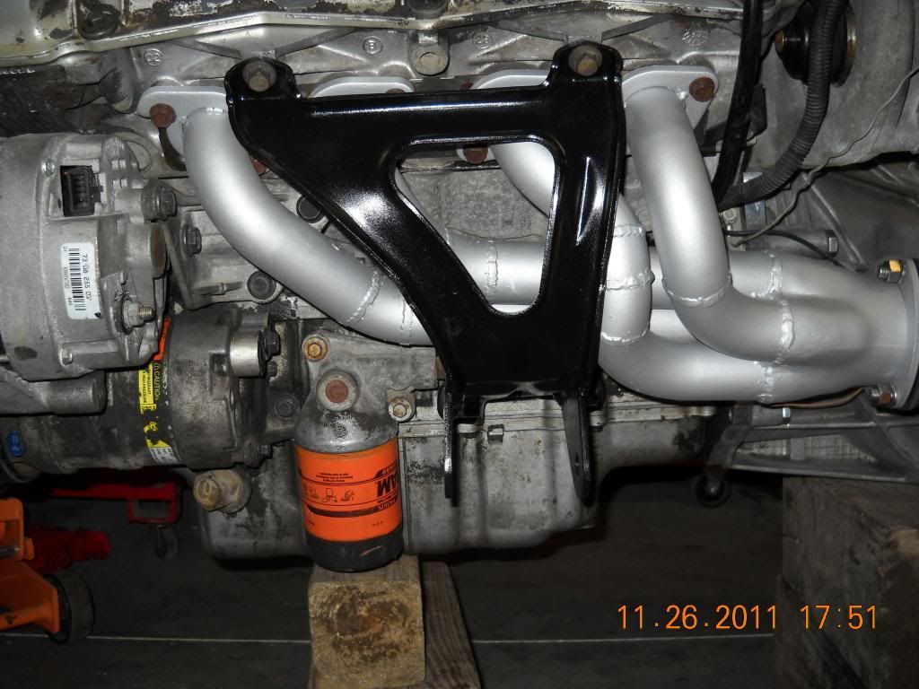 I got the motor mounts done and here are the pics. By the way, the header is the first one I ever built. I know the tubes are unequal length but getting to fit behind the original motor mount was a pain. I not trying to get every HP that I can but I think it will be better that the stock system. Next will be the other header then I will mount the engine/trans on the cradle hopfully for the last time.