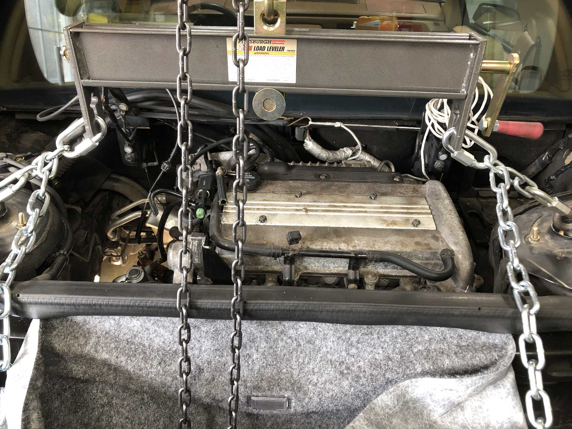 When I did the initial engine removal the front air dam was starting to touch the ground. Knowing that I'd have the car up and down quite a few times I knew I needed to lift the front end to keep from damaging anything.