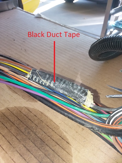 Other black tape over the harness in some areas Is Not electrical tape. Is made for just that job as won't make a sticky mess. I think eastwood.com has/had right tape for this but not digging to find it right now.