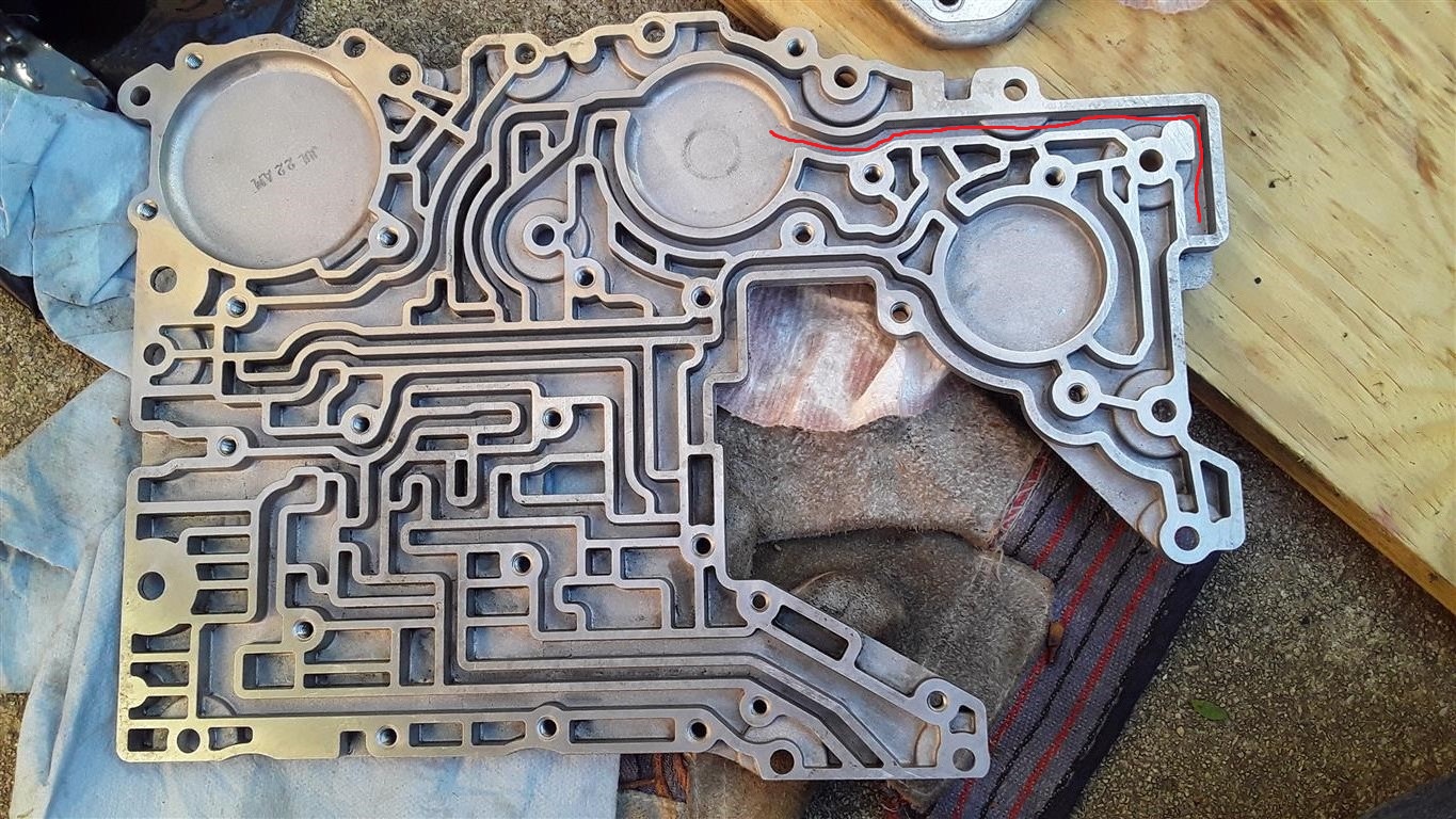 The broken passage is 2nd clutch oil to the 1-2 accumulator piston. Will cause slipping or no 2nd and burned clutches. Marc
