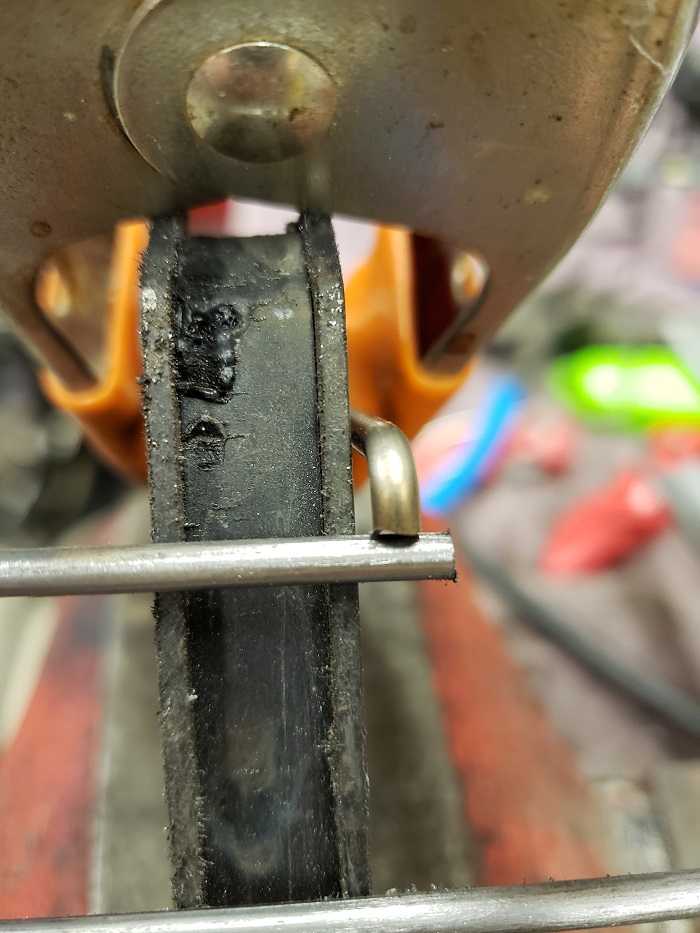 By cutting the original rod with a Dremel and cutoff wheel, the new U-shaped piece and original rod will match up. Now is the hard part because you have to weld them without losing the geometry. After making plenty of practice welds on leftover stock and making a holding fixture I was able to weld it. The mig welder made just 2-3 pulses (not trigger pulses) to just fuse them together. After careful inspection, I added 2-3 more welds and then cleaned them up.