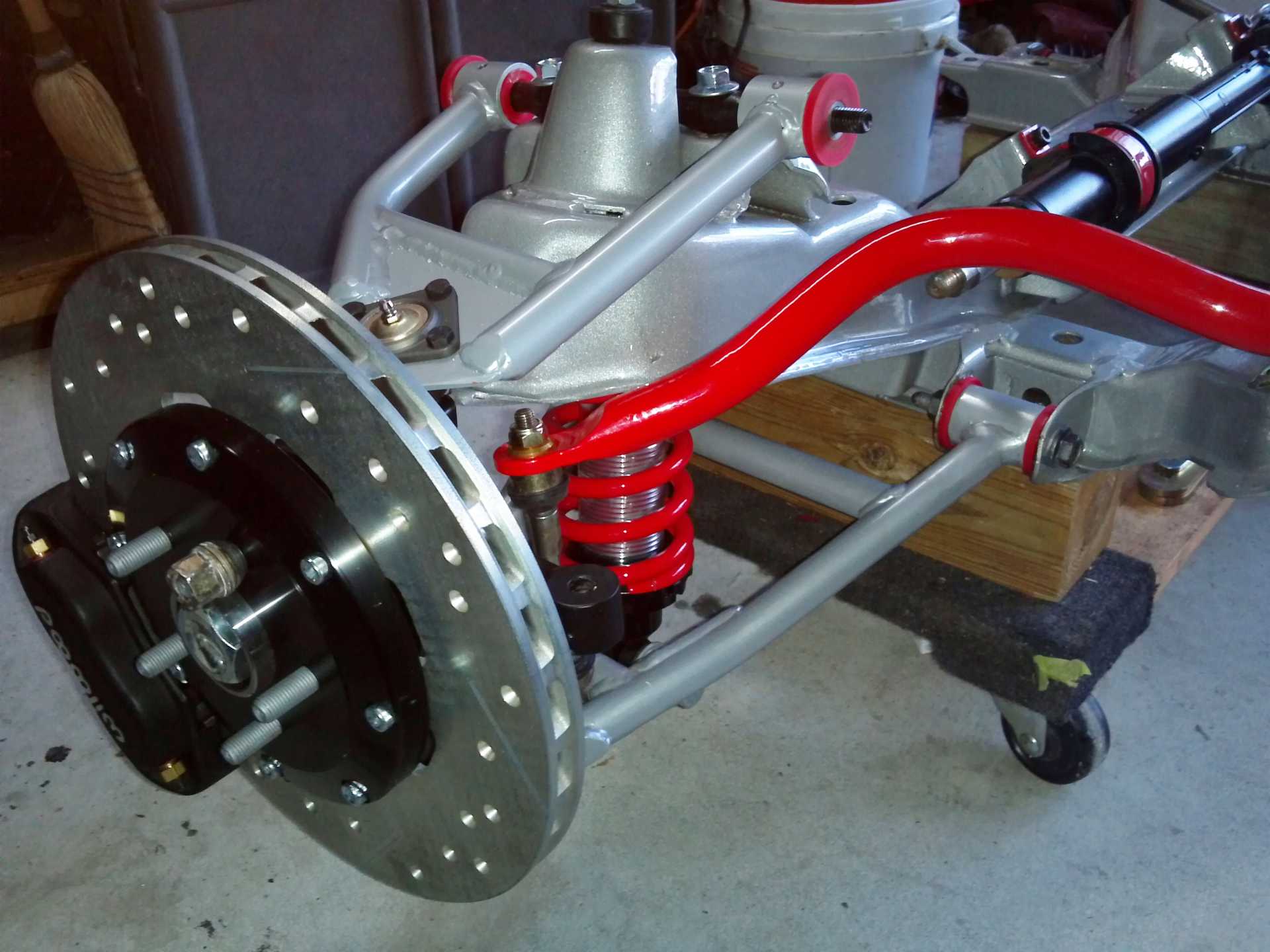 All the Ryane/Held/Arraut drop spindles and spindles from their complete front end kit used 88 rear wheel bearings. Cutting away the upper spring perch and putting the upper spring mount where it is allows the use of a wider variety of shocks. The stock shock that came with their kits only give 4" of shock travel so unless you do a mod like that you will break shocks when they bottom out. Even the sport front end kit for the 84-87's has that problem. ------------------ 86 GT built 2.2 ecotec turbo rear SLA suspension QA1 coilovers on tube arms