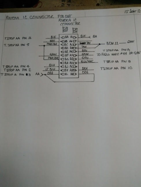 Here is a photo of my wiring road map for the Riviera digital IC connector: