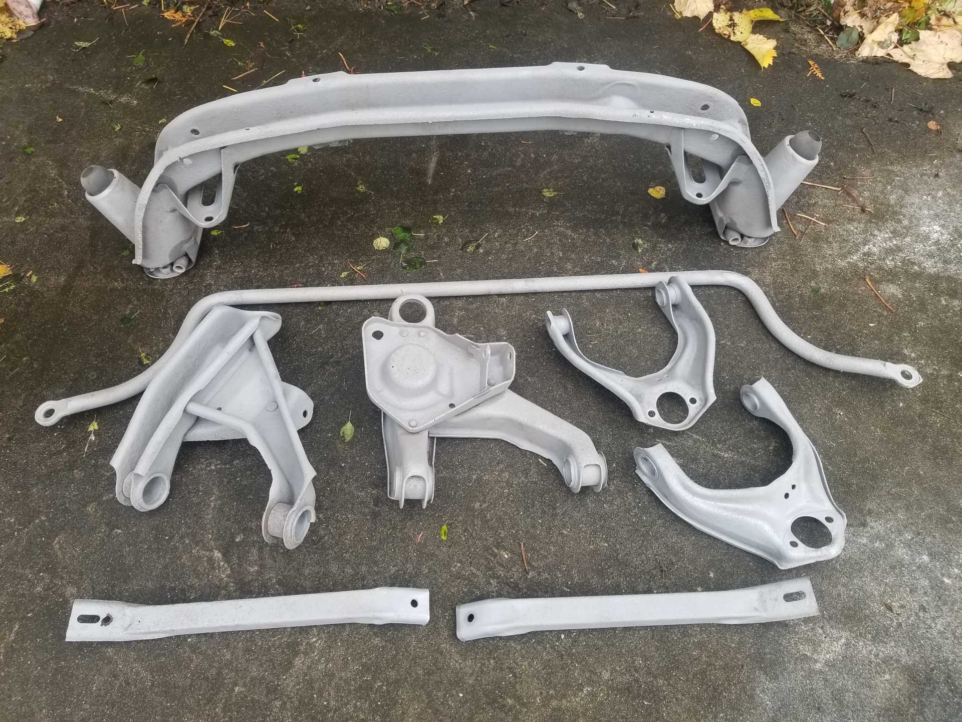 Got my parts back from the sandblaster. Got new bushings and ball joints, and have springs coming from Texas. Waiting for control arm bolts from Fiero Store. Almost ready for reassembly.
