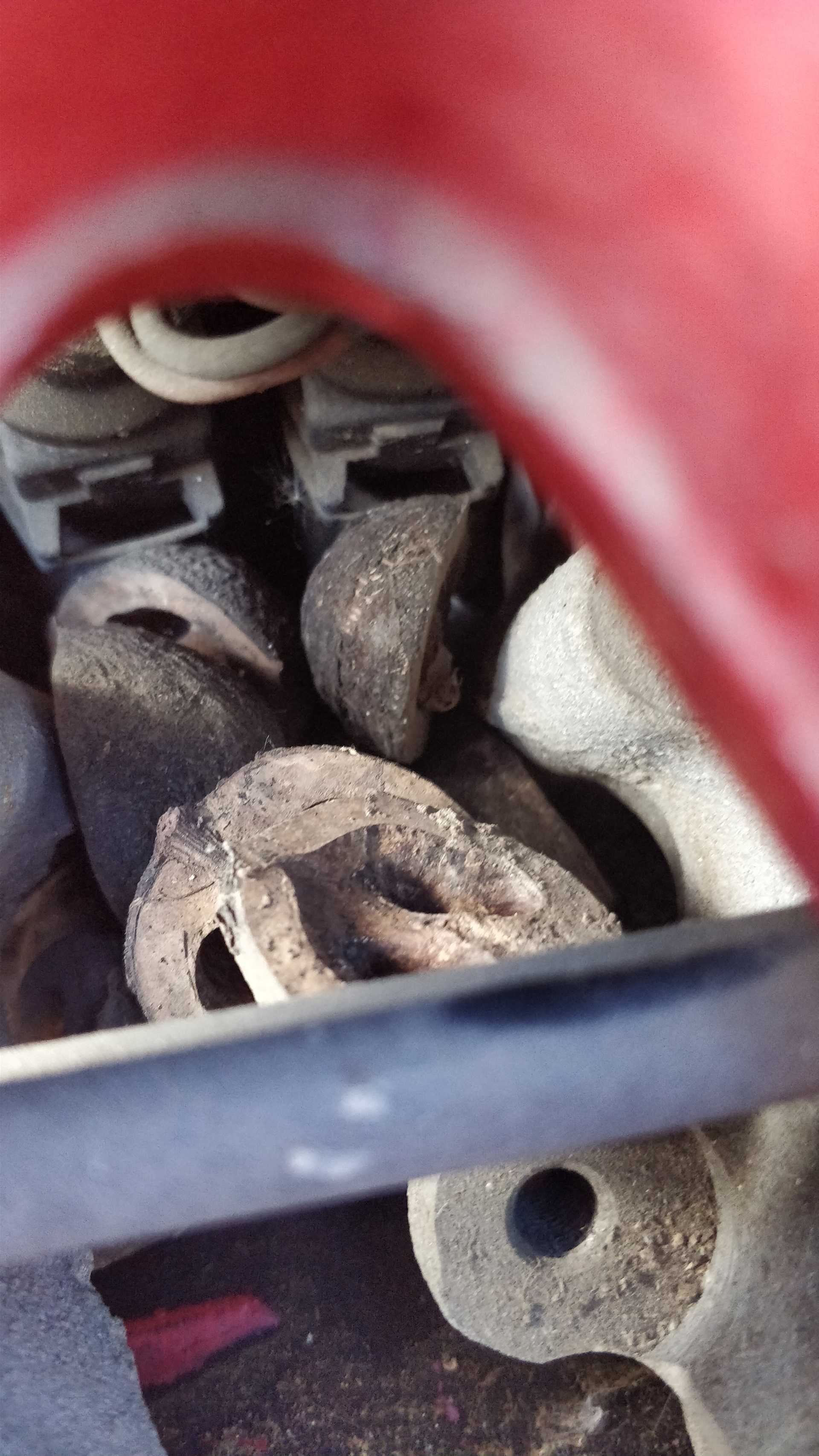 The Left (or actually right side... Drivers side but right side of the photo.) was harder to get out than i thought. I got the vice grips on and after awhile broke it loose. The other not so much. I tried to use an easy out but bent it and the then the second one i tried just spun. I eventually drilled and re tapped.