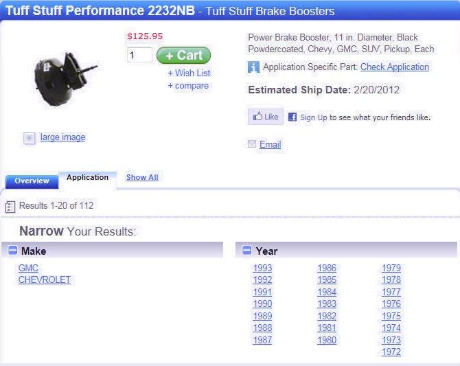 Both sites showed that these boosters would fit 1973 – 1993 GM trucks. That sure increases the number of boosters that might be available in wrecking yards! But I was looking for a new/rebuilt booster.